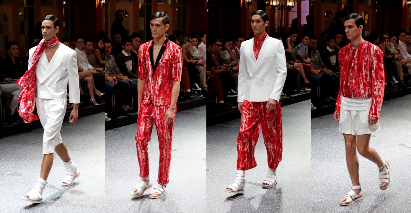 While Mr Song’s designs had a modernist sense, they, in fact, belied an Oriental aesthetic. The sleeveless jackets, for example, were cut so that the shoulders did not follow the natural slope of the top of the male trunk, instead, they were horizontal and extended, creating a silhouette with a whiff of the warrior armours of 5th Century Korea. Most of the shirts and tees were roomy and were worn un-tucked (slipping the top neatly into trousers is essentially a Western practice), thus, not allowing the viewer to see the waist of the pants. Given the hang of some of them, it would not be unreasonable to assume that a few were held by drawstrings, also very Eastern.