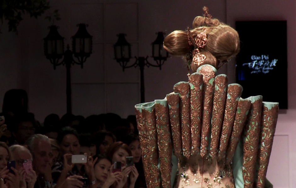 But hers is not a quiescent mind, as she digs into her own culture and the fairy tales of other lands for ideas, re-imagining iconic styles as hyperbolic creations worthy of a place in the hall of fame of the Disneyland of fashion. That she is a fantasist like Mr Poiret is not an overstatement. Sure, most designers fantasize, but Ms Guo’s flights of the imagination could come alive with the aid of a team of 300 workers headquartered in her atelier Rose Studio, two hours away by car from Beijing. Her clothes, oftentimes weighing 50 kilos (as heavy as the models!), typically require four to six people to assist the wearer, a situation not always easy to arrange even by the most well-staffed show producers, yet they accommodate her even when, like at last year’s Fashion Week, she insisted on using her own sets because she gives them a good show, a blockbuster of a show.