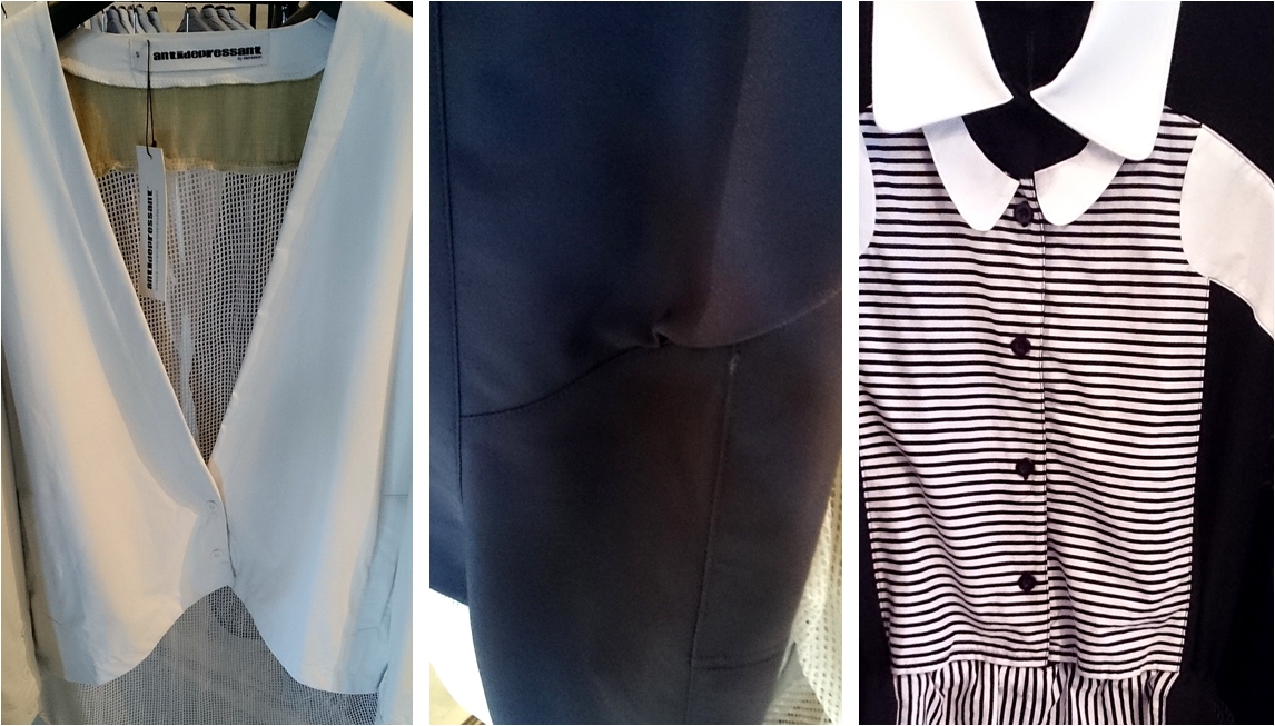 At Depression, the answer is dismal. Try as you may, overlooking these is hard: graphic blouses with clumsy interplay of shapes, tops that are little more than two joined rectangular pieces, jackets with terribly fastened horizontal panels, shirts with poorly fashioned collars, plackets that do not sit smoothly, hems of armhole that warp, inconsistent stitches and those that are criss-cross traffic on the underside, men’s jackets with the button placement for women’s. I wondered—amazed by what were allowed on the racks—if the brand’s owners care about what they make and sell.