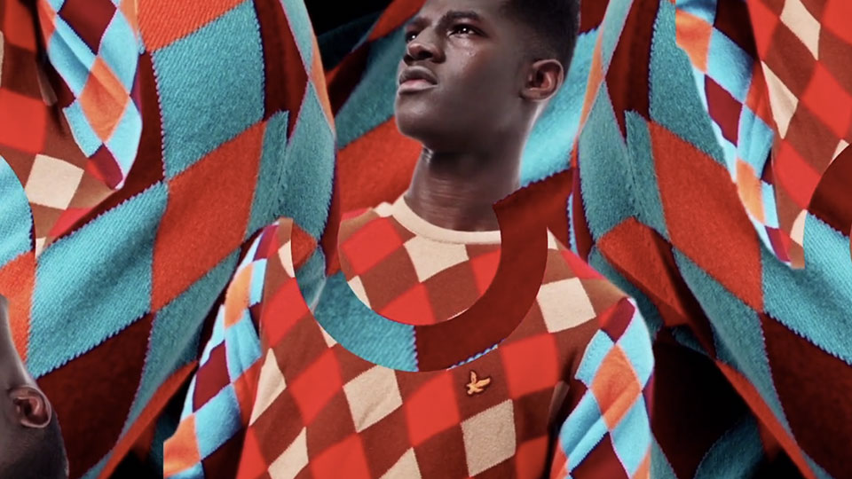 The psychedelic vibe is further boosted by a video released to commemorate this collaboration, possibly to keep pace with so many posh brands augmenting their artistic standing by releasing fashion films of art-house aspiration. Lyle & Scott’s short is, however, a frenetic Vimeo-worthy film that captures Mr Saunders’s bold aesthetics unapologetically, with loads of graphic interplay to enhance the clothes’ colour-infused patterns. This should lift the standing of Lyle & Scott above golf-playing men of a certain age, without having to drastically redraw or wreck the label’s blueprint.