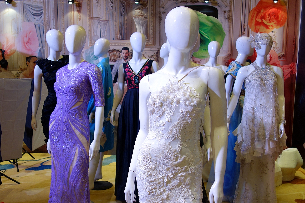 Mannequins ready for a couture exhibition at the post-Asian Couture Federation first anniversary celebration party called Couturista