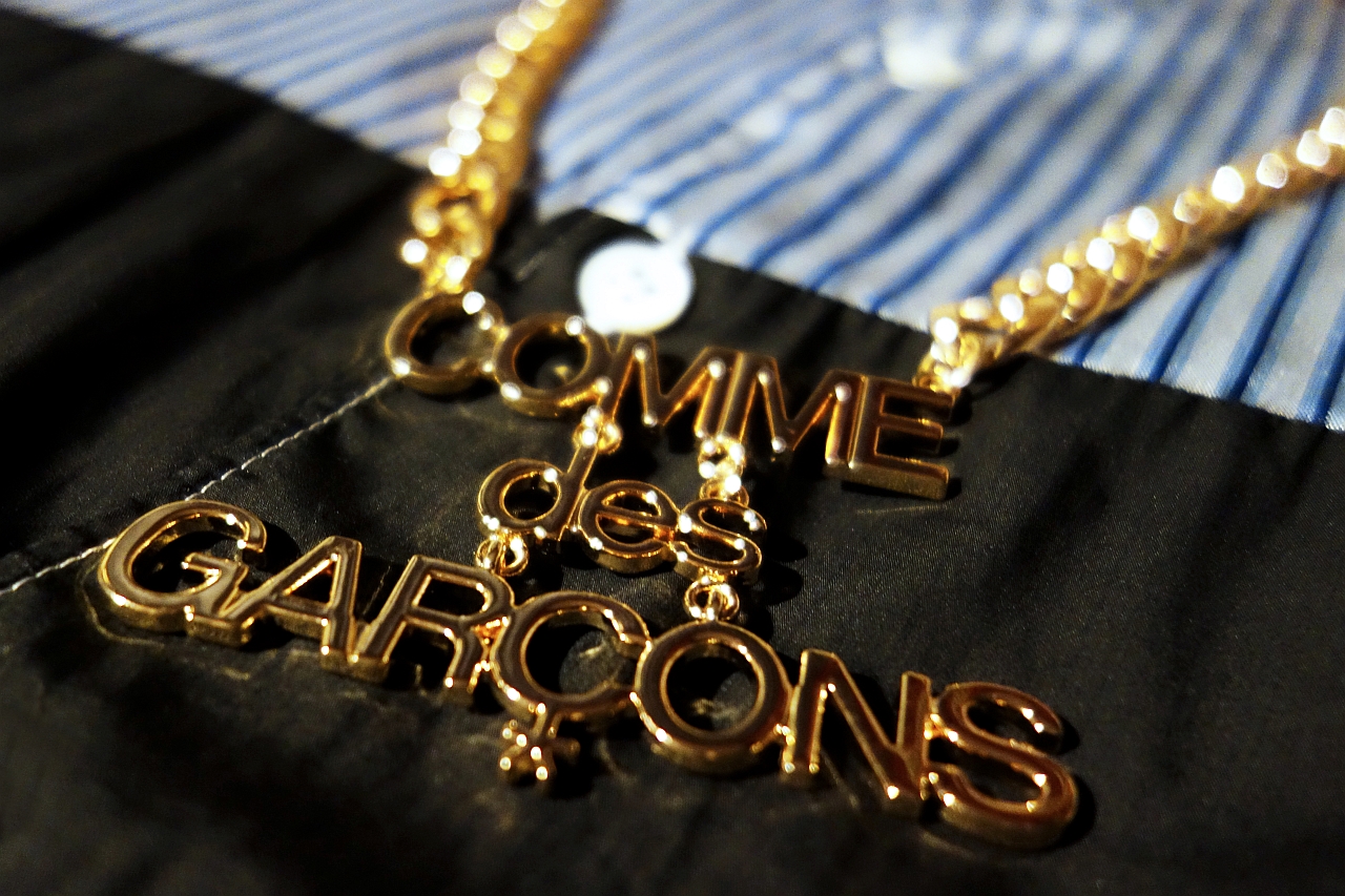 The welcome token at the Comme des Garçons party two Fridays ago was an oddity. If you’re dressed in CDG, you’ll receive a gold chain with a pendant bearing the name of the house, spelled out in its entirety (including the cédille of the ‘c’ in Garçon as a star). People seemed amused. Think gold chains, and you recall Run DMC. Yes, there’s also LL Cool J, and Eric B and Rakim. Furthest from your mind is anything associated with the work of the vanguard of the Japanese avant garde. Sure, CDG does some outré stuff, but chunky gold chain? Surely that’s in the domain of Jeremy Scott!