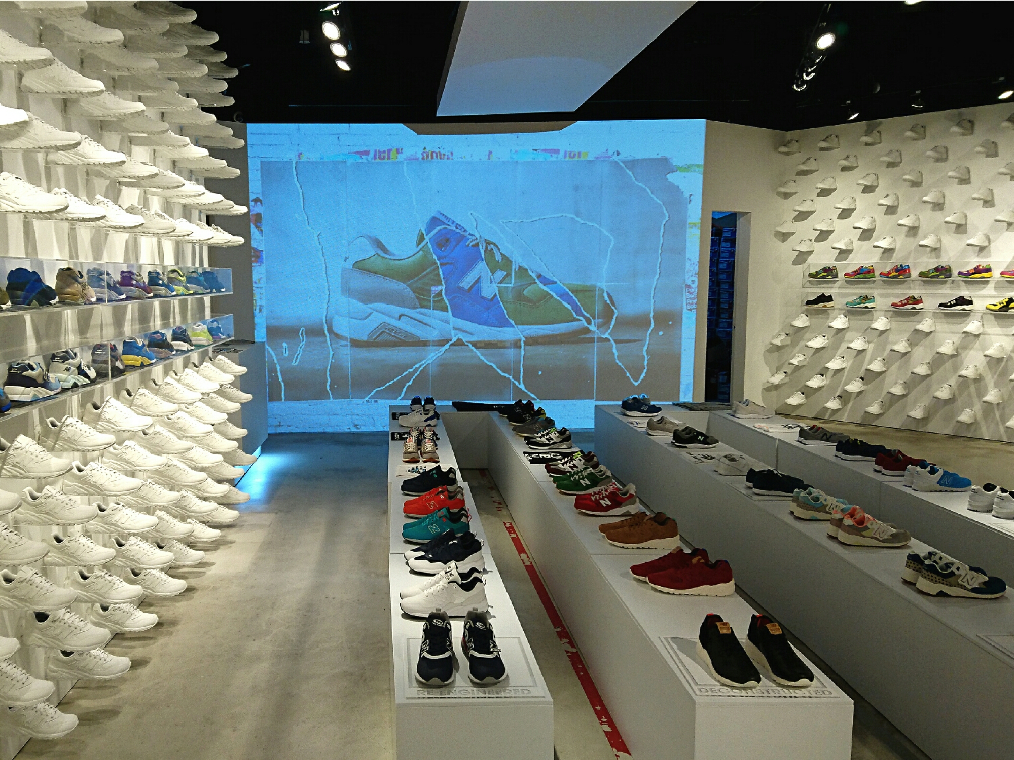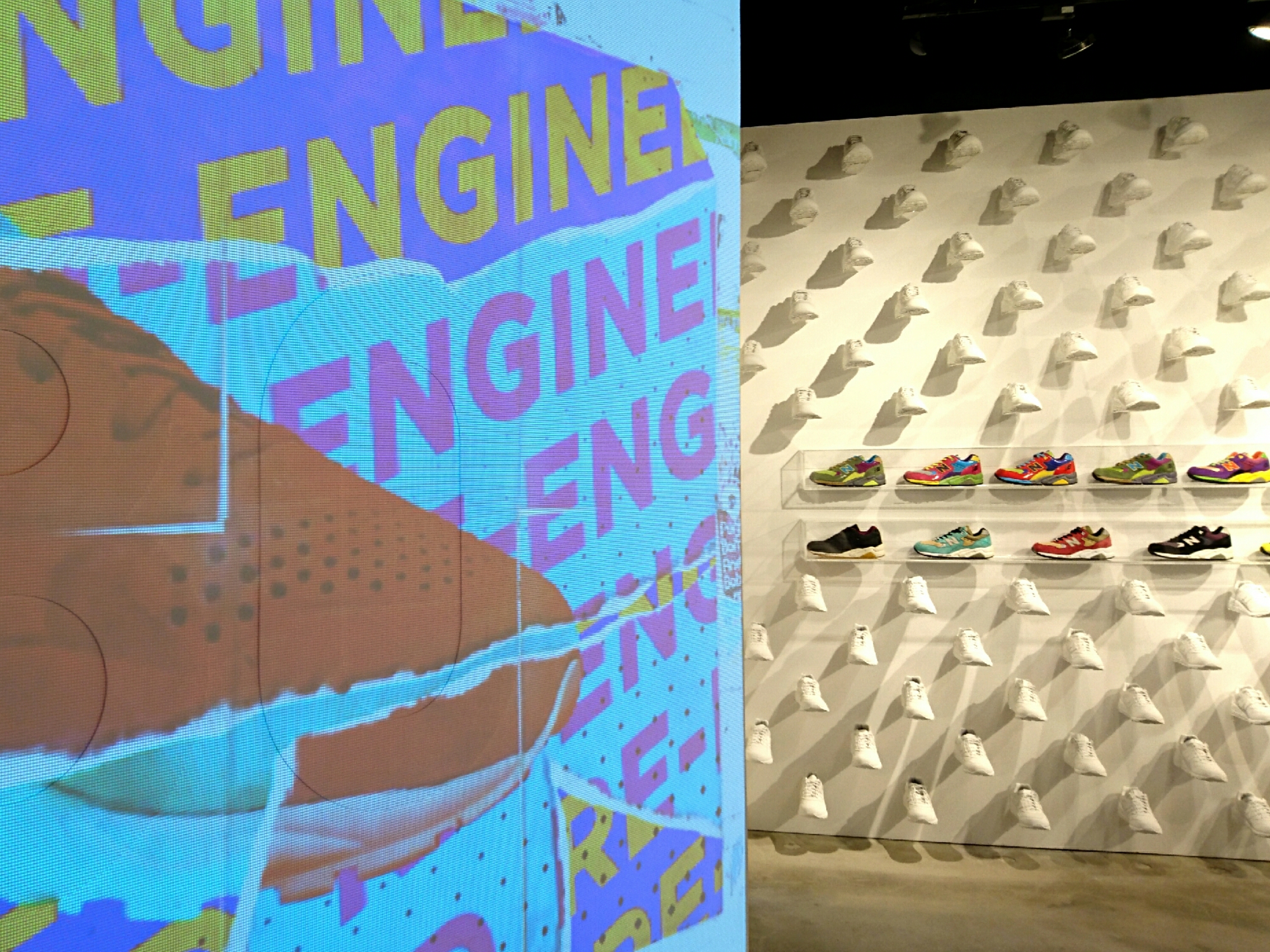 It’s not often a sneaker’s anniversary is celebrated with such style. New Balance Athletic Shoe Inc’s pop-up exhibition salutes their 580 model in its 20th year so strikingly that it will be a visual treat to those who can pry themselves away from the screens of their digital devices to be moved by the mutli-media display. Installed at its former retail store in the hotch-potch centre *Scape, the New Balance exhibition expresses the story of a shoe more experientially than a virtual room could.