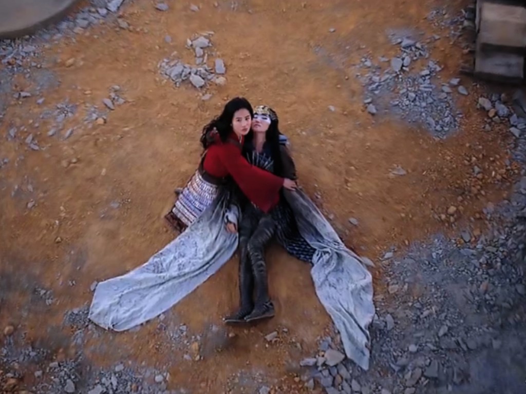 Chinese Netizens have already pointed out that these are xifu (戏服 or costumes), not hanfu (汉服 or Han clothing). Ms Daigeler couldn’t tell the difference. Since the story largely took place in battlefields (or military camps), the cast wore battle-ready uniforms with plate armours. I am sure military historians would be able to fault what the soldiers wore, but for me, the civilian clothes were the ones that grated on my nerves. Although Ms Daigeler claimed she did “deep research” on Chinese clothing and culture, she also admitted that she did not consult any Chinese professional, relying instead on her Western “intuition”. Predictably, the costumes couldn’t escape the fantasy that a Caucasian is wont to imbue ancient Oriental garments with. There were improbabilities too. After “Hua Jun died”—in the first battle with the bird-witch Xian Lang—and “Mulan lived”, as the narration went, the protagonist shed her military armour to reveal a woman’s yi (top photo) and loosely curled hair worthy of a Dyson Airwrap ad, while riding a horse! And those wide sleeves! How were they practical to wielding swords in a battlefield? Did she, like Gal Gadot’s Wonder Woman, have gender-affirming, fighting clothes on all along as they went to battle? Mulan might be a Chinese folk hero, but Disney forgot she is not a DC Comics superhero.