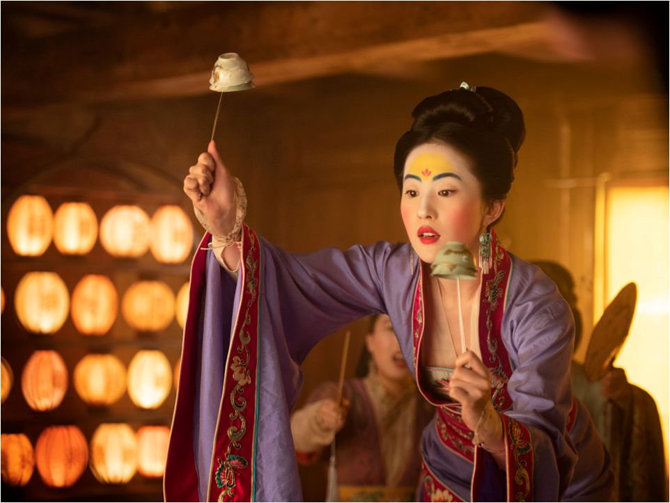 Since this was not strictly a wuxia film (or, at least not in the Louis Cha tradition), the fighting scenes were less about balletic swordplay, fancy footwork, and gravity-defying flying than brute strength, killing in large numbers, and raining of arrows. In fact, the fighting was so uninspiring that a Jacky Chan street brawl would have more going for it. The final showdown took place in an alleyway and construction site! For a reported USD200-million Disney production, the “epic” military attacks in Mulan was not more spectacular than those on less costly Chinese TV series, such as 2017’s The Glory of Tang (唐朝荣耀) or this year’s hit Under the Power (锦衣之下). As for Donnie Yen’s part of the “commanding officer” Commander Tung Yong, the Chinese have a perfect description: 大才小用 (or, making small use of big talent). I couldn’t see how else to describe Commander Tung’s uncommanding presence. Or, sudden appearance to break up a scuffle in an enlistment line (did he not have other junior officers to do that?). Or, showing off gongfu moves as demonstrations, not instructions, to teach enlistees. He sure didn’t teach the wooden Mulan; he didn’t even fight in the battle scenes. He was definitely no 战神赵子龙, god of war Zhao Zilong.