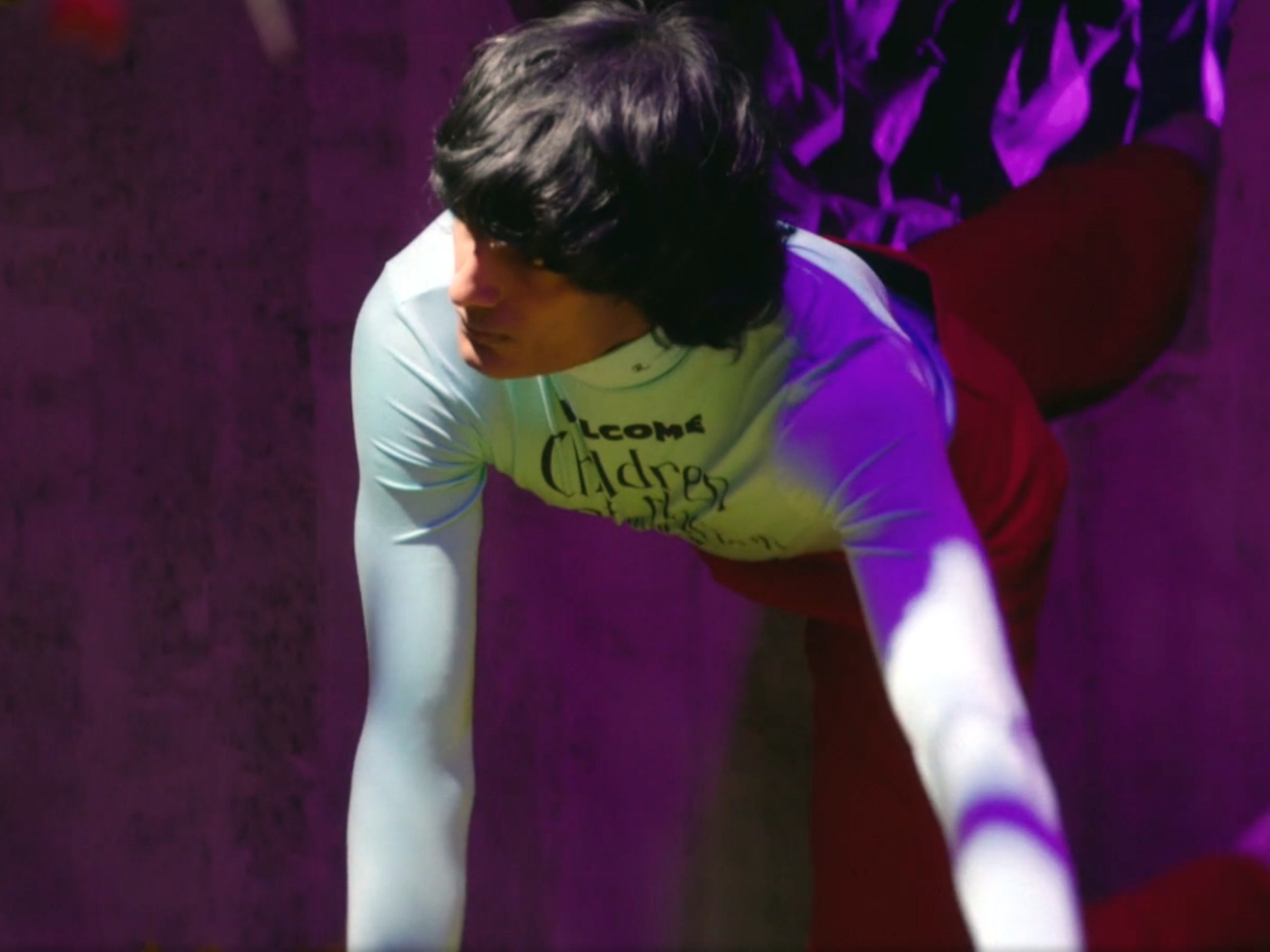 There were two openings, in fact. In the 17-minute film-as-runway, the models crawled out as if through a pair of holes-in-fence (or were they the ends of tunnels?). The first, a curly-haired guy, emerged somewhat warily into a yard of sort—carpeted with what could be dried yarrow, the colour of marigold, and with trees stripped of foliage—that all seemed alien to him. He looked around him with the furtiveness of an escapee who was finally freed from a dystopian world—or, more relevantly, one ravaged by a pandemic. He wore a fitted, long-sleeved, turtlenecked top. On the chest, it read: “WELCOME HOME. Children of the Revolution.” We have no idea what Raf Simons meant by “revolution”. These past many months have been revolution-calling months. Or was it “Discord” (another message) in the presence of current social constraints and, sadly, confusion?