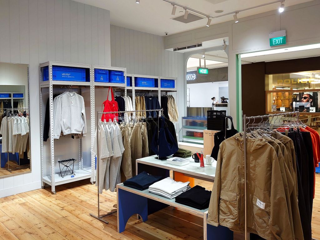 The men’s side of the store, with its own separate entrance, is possibly the more enticing part, mainly because it is a newer offering of the brand. For a generation of guys now preferring a more relaxed silhouette, the line of easy-to-understand separates has drawn considerable attention. Details set some of the pieces apart, such as one style of shirt’s right corner of the left pocket—it can be unbuttoned to reveal a contrast-colour underside. Yet, there, too, are details overlooked, such as the oddly short crotch for pants, and the woefully shallow pocket bags. I overheard a male shopper complaining to his girlfriend that he “can’t see” the prices on the hang tag. True enough, they are microscopic. As I take in the commendable men’s section, I notice that they sized up the colour-blocked “Crunch carrier” for a more suitable proportion (S$89 for the “Mega” and S$69 for the “Mini”) that guys might find manly enough to carry.