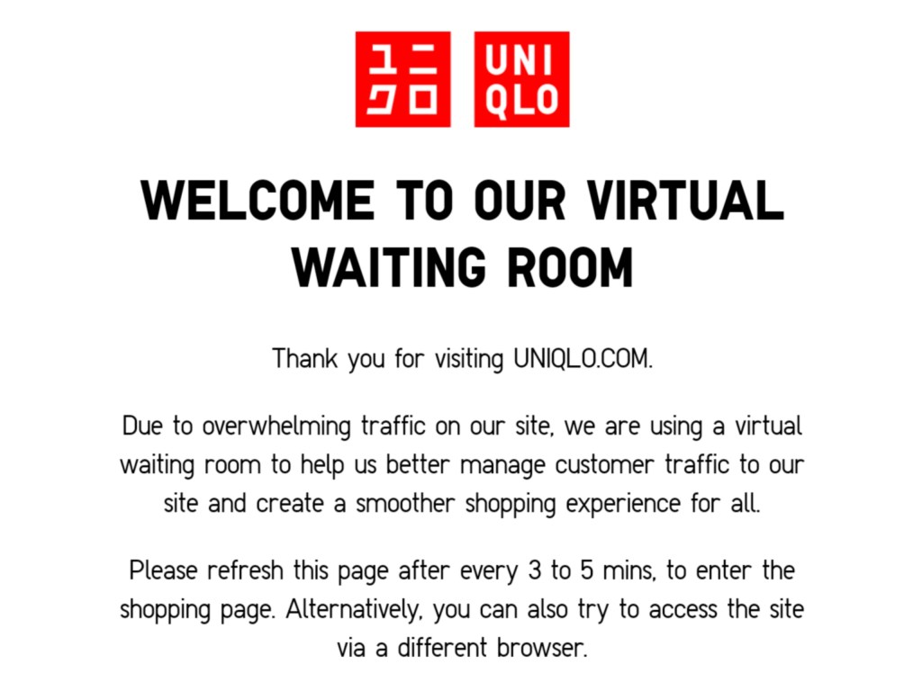 At thirty past six, the light from the Uniqlo website emanated from our phone, casting a soft glow in our still-dark bedroom. Further awaken by coffee, we thought we would be ready for what Uniqlo would offer us this morning. Fifteen minutes to seven, out attempts mirrored six hours earlier’s. But this time, we were digitally ushered to a “Virtual Waiting Room” (VWR). The reason: “due to overwhelming traffic”. Six minutes in here, nothing flashed or flickered. We refreshed the page and was again showed that VWR (do these ever get full?). While getting ready to go to the OC store, we tried again. At some point we could access the product pages, but we could not add anything to the still-empty cart. On the MRT train, many pages of individual items started showing a red “Not Available” across the colour choices of items, which we took to really mean sold out.