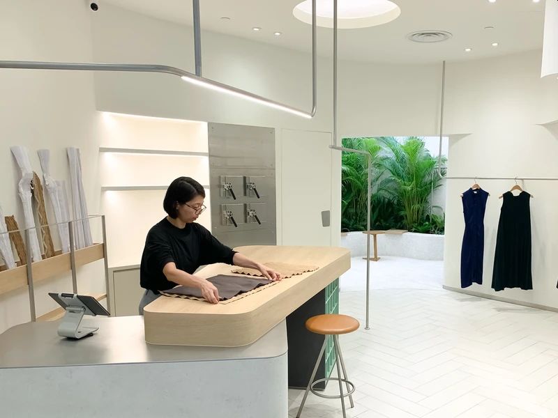 The Ginlee Make bags are the manifestation of the in-store service Make In Shop, a retail concept that offers “last-mile production” of those items that can be finished before watchful shoppers. As Ms Lee told the press last month, “When a customer places their order for a pleated bag, we’ll proceed to make it for her there. They can see it being made and customise their own version of it.” In Tokyo last year, at the world’s largest Homme Plissé Issey Miyake store in Aoyama, the brand availed its pleating process for customers to witness. Three times a week, over a relatively short time of an hour in the afternoon, engineers (they are specialists indeed) from the company’s Internal Pleats Laboratory show how the clothes are made: a massive machine swallows a sewn T-shirt, for example, cut 1.5 times the completed size, and in ten minutes, reveals the pleated garment. This, too, is last-mile production. How long must a recognisable design, fabric treatment, retail concept, or branding exercise remain or circulate in the market before mimicking them can be accepted and not considered a copy?