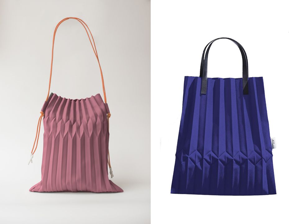 Pleats plenty: (left) Ginlee Make Bag. Photo: Ginlee Studio. (Right) Issey Miyake Crystal Rock Pleats Bag. Photo Issey Miyake Me