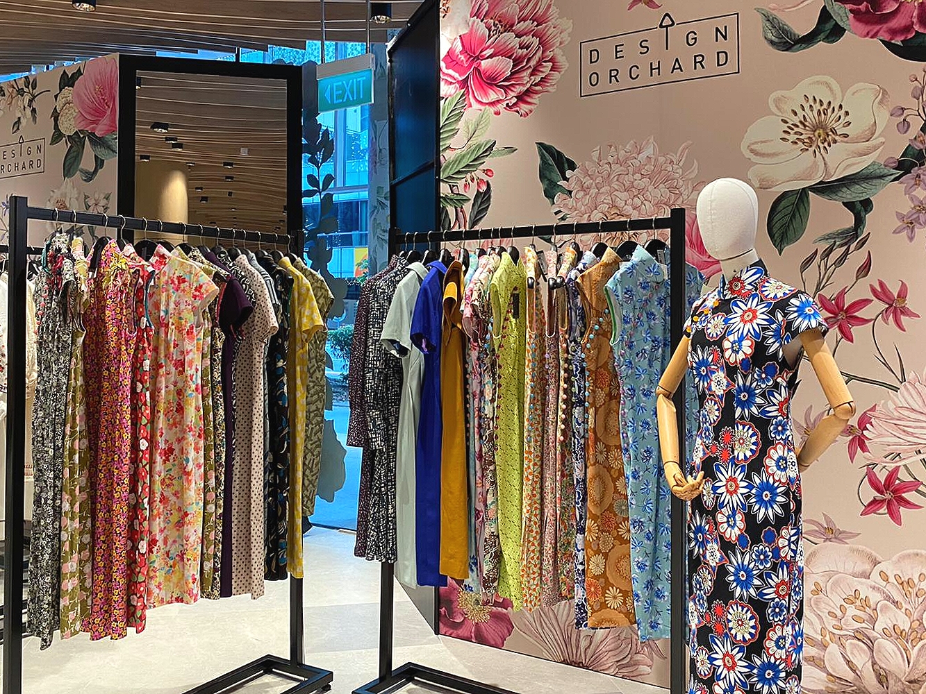 Another name that’s new to Design Orchard, but not an unexpected one, given the approach of Chinese New Year, is Lai Chan by Goh Lai Chan. Although Mr Goh is a popular designer of occasion wear and a name bandied about among some society women, he is still the go-to name for his unchanging retro-modern cheongsams. A profitable sub-line, the cheongsams are reportedly in demand among women who favour this dress style, as well as among stockists that bank only on products that move, especially with the lead-up to CNY. The close-to-forty-years veteran provides Design Orchard with his usual, neatly sewn, not-too-constricted cheongsams, distinguished by the row of coloured spherical stones of indeterminate gemological value on the right, in place of Chinese frog buttons—an aesthetical sum Mr Goh seems to have churned out forever. These will likely sell well for the store, although if you already own one—or two—of this particular style, they may have less subsequent pull, however floridly vintage-looking some of the fabrics are. Nostalgia has its limits too. Change might inspire a more bloom-ful present than a mirrored past could.
