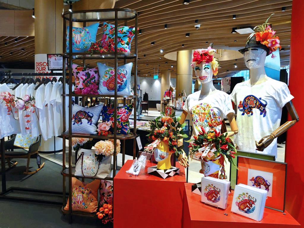 The other name new to Design Orchard that will surprise is Yang Derong. On hindsight that shouldn’t, in particular when Dick Lee is in the picture. Both of them are the best of friends, and Mr Lee’s song Follow your Heart (from the 1991 compilation album When I Play and, later in the OST of the 2017 autobiographical film Wonder Boy) was said to be written for Mr Yang. It is, therefore, not immoderate to assume that, this time, Mr Yang was roped in by Mr Lee. A designer who hails from the late ’80s, and who is reportedly retired from fashion, Mr Yang has, in recent years, made a name for himself as the creator and sole model of the quirky and unapologetically outrageous Instagram page FaceOfTheDaySG, which was followed with a 2019 exhibition at the National Museum, and also as the makeover stylist on Channel News Asia’s Style Switch. But rather than design clothing that many still remember him fondly for, he created a “lifestyle” line to appeal to not-yet-returning tourists. The refinement-lite collection of T-shirts, bags, face masks, cushion covers, and greeting cards are based on the Chinese zodiac. Labelled Sayang Sayang, the manja-ish name and the kitsch-driven products have Mad Chinaman written all over them.