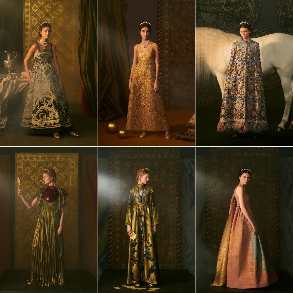 The clothes—it’s always about the clothes—hint at her years with her former employer, Valentino, where she co-designed the collections with Pierpaolo Piccioli, whose “reign in the House of Valentino,” Frances McDormand wrote in Time, “has been a lesson in grace.” Ms Chiuri has brought a vestige of that grace to Dior couture, specifically the decorum linked to medieval times, which both designers explored when there were colleagues. There is a palpable modesty to it all, as if to negate the skin bearing or hinting that she has introduced to the RTW. Or are all that fabrics necessary to show off the skills of the atelier? The luscious gowns, without doubt, represent the epitome of dressmaking done mostly by hand. The recherché classicality deliberately illustrates the exquisiteness of couture, in case you didn’t know. It is difficult to position custom-made collections these days. Does a house celebrate craft or design? Can both coexist? Despite the dreamy and fanciful filmic musing, Dior has not really answered the question.
