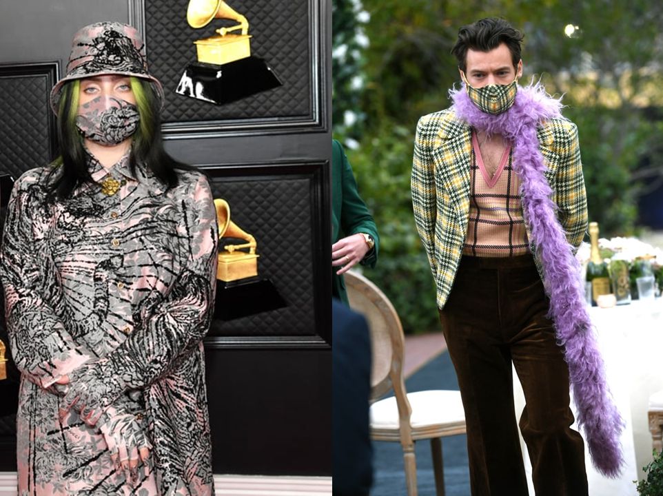 Billie Eilish and Harry Styles in unmistakable Gucci outfits. Photos: Getty Images