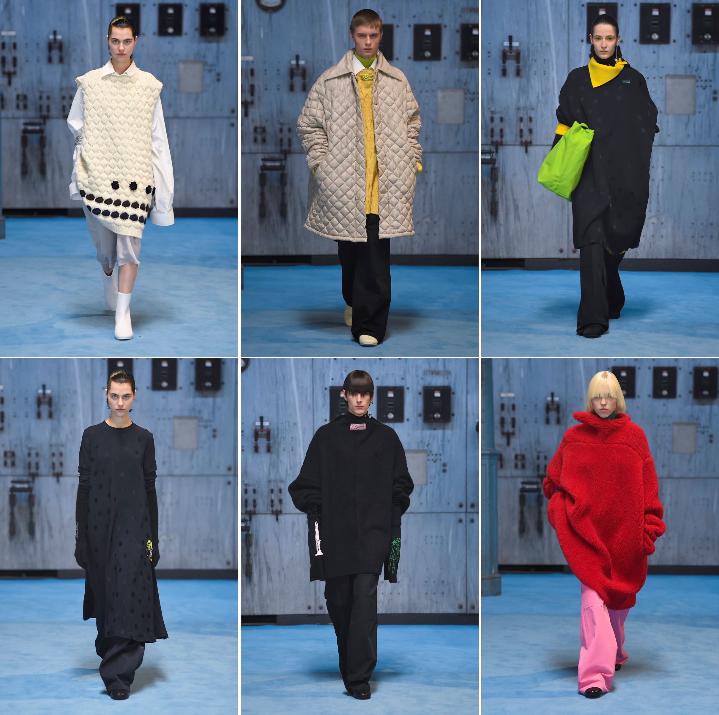 The catchy electro-pop minimalism of Radio-Activity, perhaps, threw us off. We couldn’t really imagine Raf Simons set against Kraftwerk. (But who else could we have thought, Tate McRae?!) In 2015, an article in the Financial Times, enthused that “it is difficult to think of a band less inclined to noodle—and yet there’s also warmth and humour in their music”. Perhaps the same can be said of the clearly-intoned designs of Mr Simons, even when we couldn’t join the dots between the designer and the music. It is not the warmth of his tenure at Dior and not quite the humour of, say, Moschino, but there is—we did sense it—something warm and humorous. In fact, the oversized shapes that Mr Simons has been offering for a while now sometimes felt like a big joke, and you either get it or don’t. We do know, for sure, one person who does: Miuccia Prada.