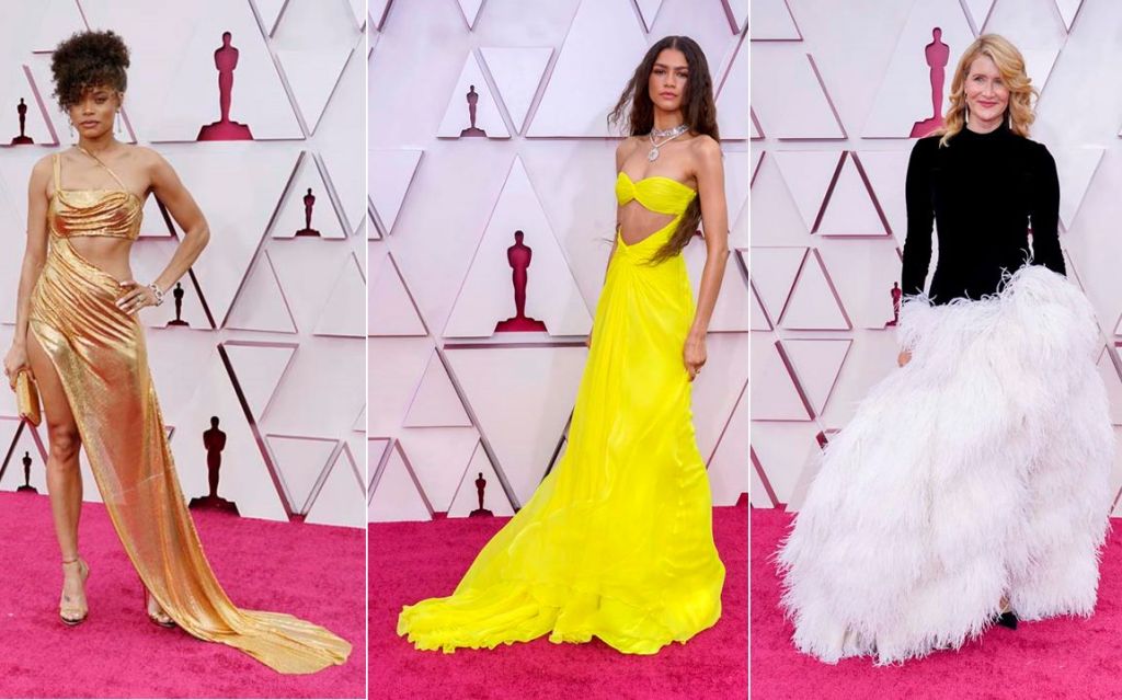 The skin-baring and the over-fluffy: (from left) Andra Day, Zendaya, Laura Dern. Photo: Getty Images