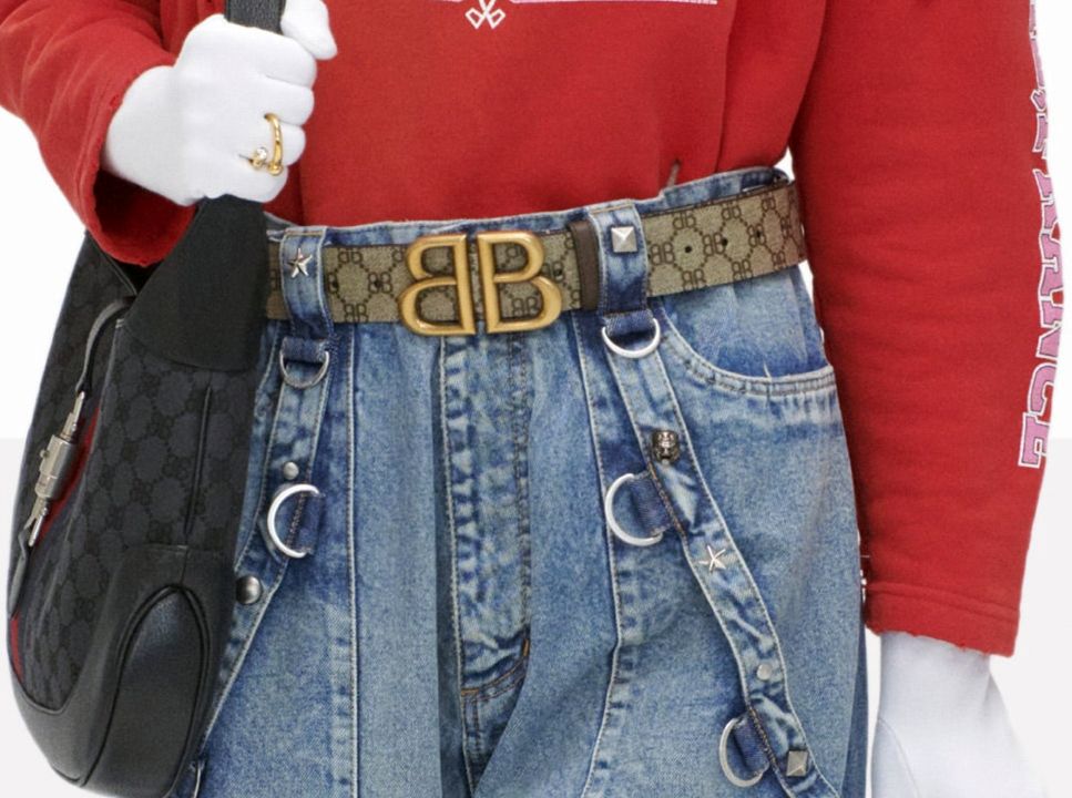 It’s a confusing time for fashion and to add to the confusion, brands that should be rivals, even under the same conglomerate, are featuring each other’s accessories. We don’t know why this has to be so other than for both to sell more bags and such. Call us naïve. But if even a storied house like Balenciaga has to feature saleable Gucci merchandise with additional Balenciaga branding, then perhaps we’ve moved from ugly to crass. This Balenciaga’s spring/summer 20211 and the Gucci part really got to us. We can understand Gucci wanting to share Balenciaga’s winning aesthetics, but for the B to want a sliver of the G is, frankly, bewildering. Do customers of both brands really want a Balenciaga Gucci or Gucci Balenciaga? The two-is-better-than-one-thinking? Don’t be so serious, we hear people say. Oh, is this some mischief we know not of? An inside joke between the two houses? Because, if we look closely, Balenciaga has done the Gucci diamond monogram with a double B! Oh, we forgot. It’s called “hacking”. And who can be mistaken when a monogrammed tote is scrawled with “This is not a Gucci bag”?Don’t let the red-and-green stripe fool you.