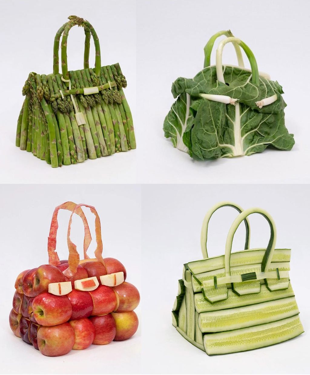 It’s delightful to see that Hermès does not treat its signature Birkin bags too preciously—at least not to the point that they can’t be reimagined or delineated with artistic humour. On their official Instagram recently, Hermès posted images of their “iconic” bag dreamed up by the American artist/designer/publisher Ben Denzer, using vegetables and fruit—so distant from exotic skins Hermès is known for (the Nile crocodile hide that is the ‘Himalayan’ style, for example). Birkin acolytes (Jamie Chua?) may frown at this making of food porn out of their prized handbag grail(s), but the French house urged followers and viewers in their IG comment to “enjoy the detour as classic Hermès bags inspire art good enough to eat”.