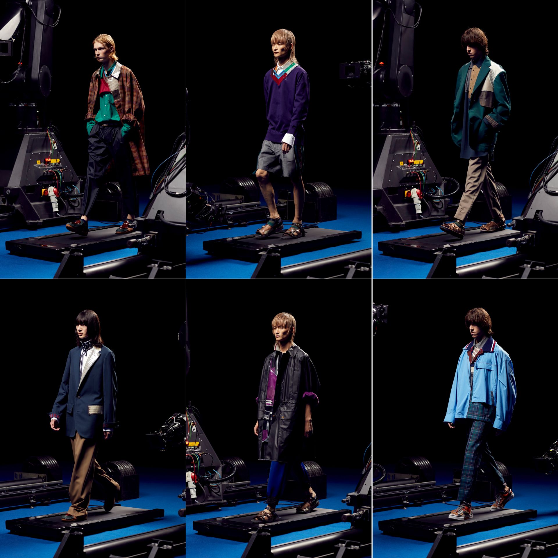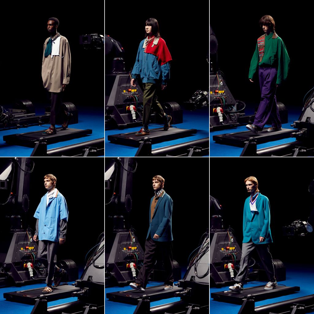Yet, if the spring/summer collection looks a tad similar, it’s because Mr Abe’s design approach this season seems like a version 2.0 of his autumn/winter 2021 collection. Could this be a natural progression of designs started during the lockdowns that struck so many countries and progressed to a time when social restrictions are still very much a part of our lives? Perhaps that could also explain Kolor’s presentation. The space is the neutral confines of, say, a theatrical black box. The models walk on a short treadmill (barely half the length of what you would find in a gym, and operating at a speed that would feel like a stroll). Despite the walk, the models are essentially in the same spot. An observation of how we are all essentially in one position, at the same time, even if the optimists among us think we’re heading towards a better place? And does the pair of flanking robotic arms with cameras attached to them, to zoom in on the walkers—garment parts recognition, too, enabled?—work like contact tracing devices and apps, tracking us and the clothes we wear? How this must delight the fashion police!