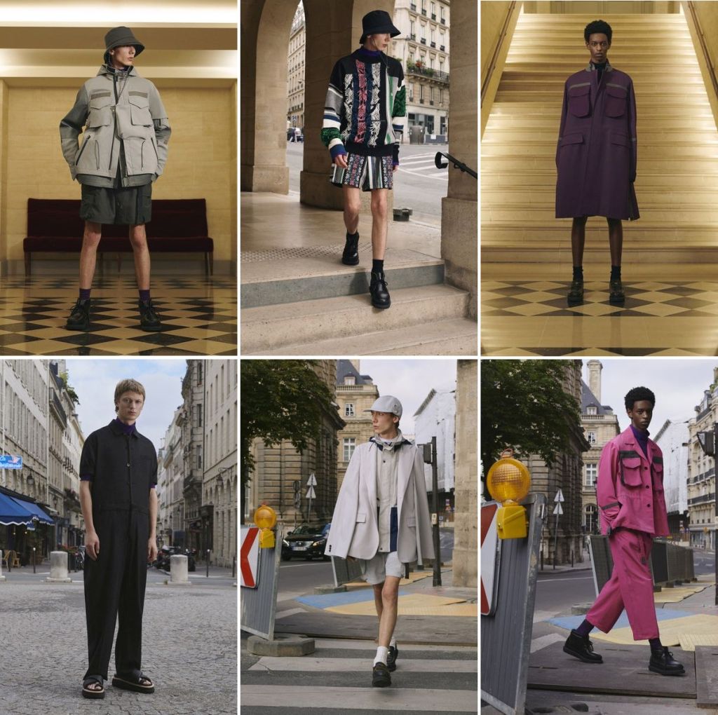 It is surprising that Sacai’s Chitose Abe didn’t stick around in Paris after presenting the Jean Paul Gaultier couture collection three weeks ago. You’d think that since she was already there, she’d show her menswear after that. After all, Sacai has been showing in Paris since 2011 (except during these pandemic times). Instead, she returned to Tokyo and issued a set of photographs for the brands men’s spring/summer 2022 collection (and the women’s resort) that was shot in Paris—possibly before she left—at the Odéon-Théâtre de l’Europe on the Left Bank and its surroundings. Odéon-Théâtre de l’Europe is one of the six national theatres of France, and the present building (1819) is the third iteration. The original building was inaugurated by none other than Marie Antoinette. It was here that Beaumarchais’s Le Mariage de Figaro debuted some two years later. Despite the building’s historicity, the photos projected an unmistakable street vibe. Ms Abe isn’t, perhaps, ready for an IRL show or maybe doing couture took its toll. Despite the heady schedule (there was also last month’s Dior men’s capsule designed in Tokyo and the KAWS collab, just to name two), she did produce the men’s collection, albeit showing it off-season, or, rather, not during PMFW. This has not reduced the impact that Sacai’s clothes tend to have, alongside her compatriot (and former colleague) Junya Watanabe, on the Paris menswear season.