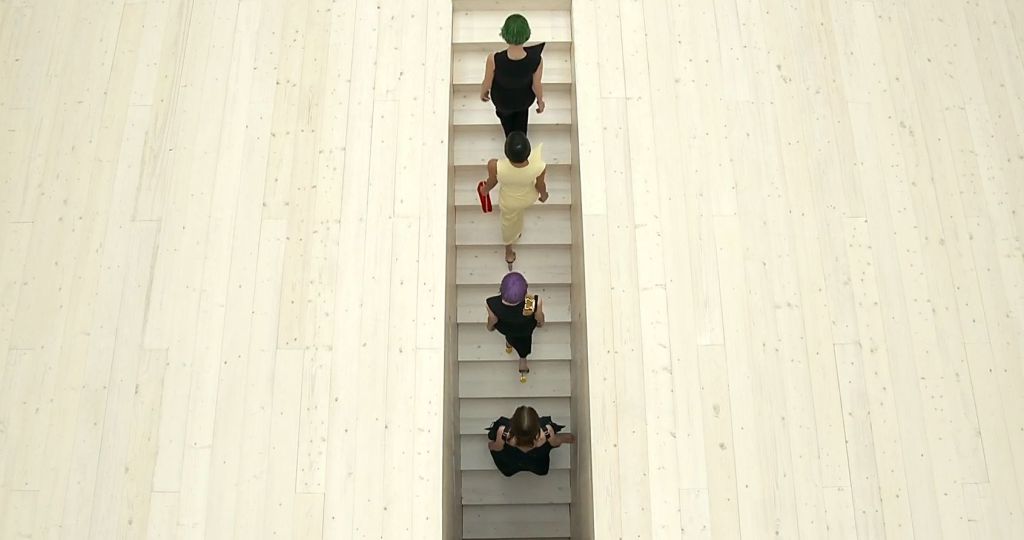 A large undecorated room. A perimeter of closely-seated guests. An opening in the floor in the centre of the fair-wood space. A gentle flow of spare, percussion-free music (While my Heart is still Beating, from the London-based Italian electronic act Not Waving and label mate Romance). Against this orchestral/electronic track—so stark, yet soaring in parts, it’s almost devotional—the models walk unhurriedly from the basement to to the open floor. Each measured step allows the clothes to be viewed in their structural or fluid brilliance. Nothing is as severe in simplicity as the music suggests. Each outfit evinces that there is a difference between dressing and wearing. Each, a study of balance, texture, and the unlikely. This could be Loewe’s strangest collection, and strongest yet. This is not an exploration of what having fun again would be like. This is fashion as if it never took a hiatus; expressive, as stylish life goes on. This is Jonathan Anderson reaching a climactic career apex.