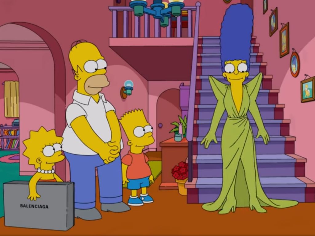 Demna Gvasalia tells the media that the whole exercise is about having “fun”, something so missing and missed in our COVID-stricken lives that fashion is now placing the seeking of entertainment and mirth as prime. And in Paris, the Simpsons certainly are enjoying themselves. And the whole of Springfield, even if they are fish out of water. Homer, the last fashionista, wears his red Balenciaga jacket like a postman his uniform. Thankfully, outside toon town, the style is more sleek, ever kooky, Balenciaga standard. The charm (and now star quality?) of the brand is its ability—irony still dripping?—to compact both red-carpet elegance and off-kilter street style into a single look with rigour and discipline. Sure, these aren’t dresses a Bond girl would wear on a date with Double-O-Seven (nor are they the stuff of his wardrobe for jet setting and licence to kill), but for those who need to be validated as perversely cool, and directly connected to Mr Gvasalia, such as he who conceives Donda. In Balenciaga, one is not under-dressed or over-dressed, just dressed, statement unequivocally made. How convenient for most fashion-craving rappers and their inner circles.