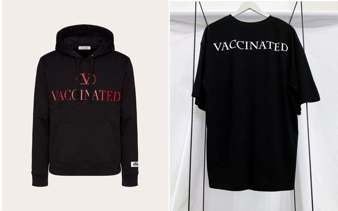 Yes, COVID-19 has made our world more confusing than it has ever been. In the fashion world, no one would be surprised if you see double: one design like another, or two names as one. Fendace! Designers are now hacking, cloning, and swapping. What is real, what is not? Who came first, who came after? To further boggle the mind, our very own Depression has joined the race to declare one’s vaccination status across a T-shirt, shortly after Valentino’s made theirs on a hoodie. Coincidence? Or is there something in the air, apart from virulent viruses, that makes people want to do the same things? Perhaps one of the side effects of vaccination is the afflicting of individuals to have the same idea, at the same time?