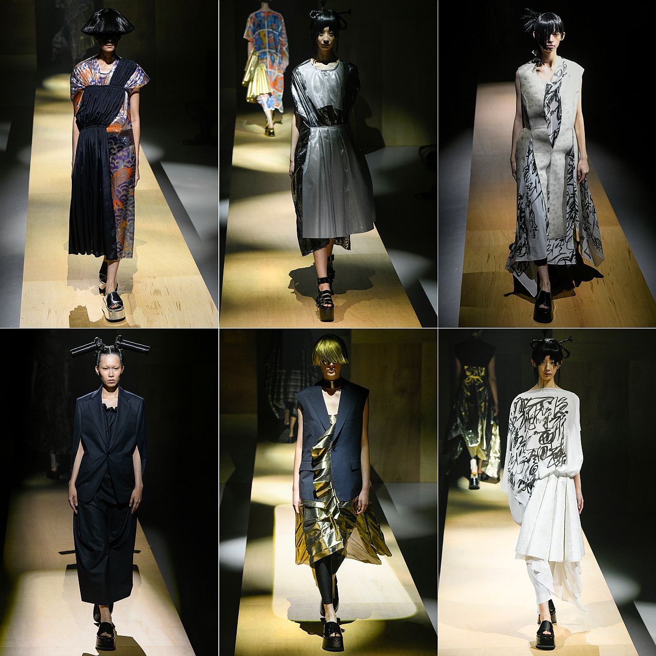 How much of our own front and backyard can we explore without trampling on the same patch of grass or knocking into the same row of trees? For designers, how often can they revisit Orientalism without ending up using the mandarin collar? Or, putting out yet another wholesale repeat of the qipao? Or, escaping into the folds of a sarong? For his spring/summer collection, presented as an audience-less phygital show, Junya Watanabe discovers the farther reaches of Asia that is not necessarily on the east of the continent in which he is based. And he did not have to use a single qipao ling (旗袍领) to say something about the aesthetical and creative wealth of the region. The designs, while recognisable for their Eastern sensibilities and cognizant of the minority ethnic group they seem to come from, bear the distinct Junya Watnabe way with fabric mixing, texture pairing, asymmetry and draping. In each outfit, a collage of contrasts—a Ming-vase-as-scull meets school-girl prim-and-proper, calligraphic graffiti meets deconstructed denim, sari-like drapes meets negligee-sheer. And those are just the first three looks!