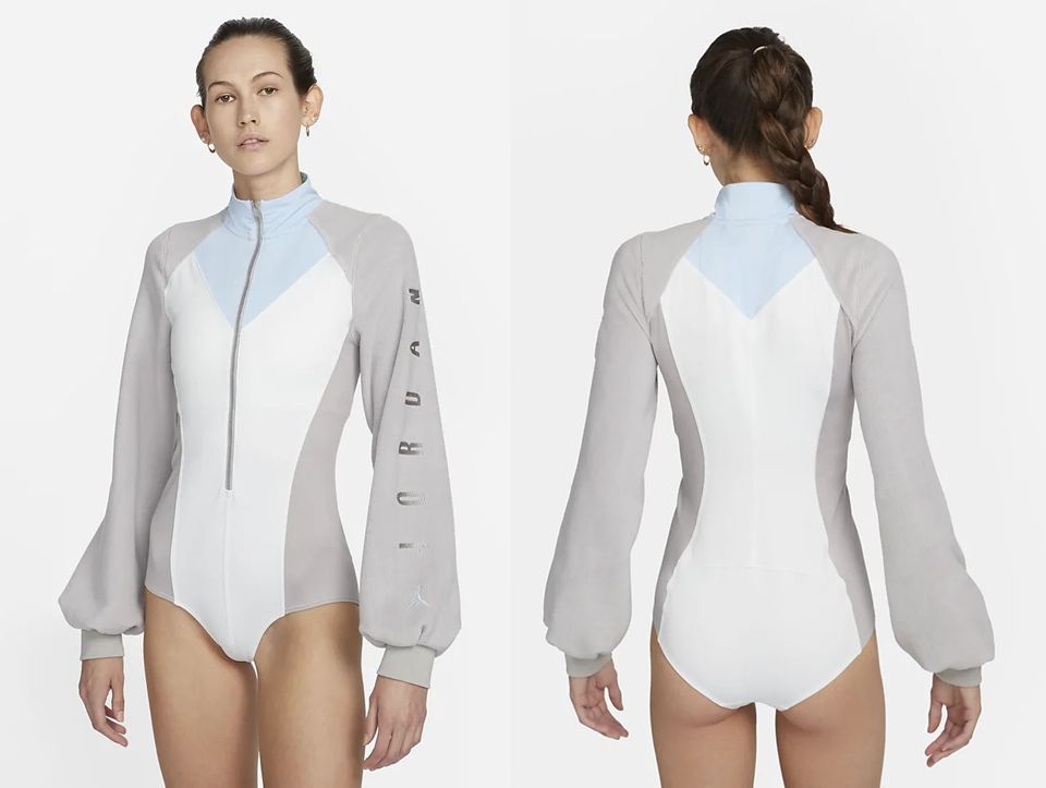 It is sometines easy to forget that Nike’s Jordan Brand is really tethered to basketball. Or that it bears the name of former athlete Michael Jordan of the Chicago Bulls. It began as a label dedicated to producing shoes the star player would put on to play and to compete, but somewhere along the brand’s 36-year history, “style clothing” for both men and women were introduced. Aesthetically, the products often do not quite leave the boundaries of basketball courts, although some of the shoes might appear to be better suited to fancier stomping grounds.Yet, occasionally, they will issue an item that would not stick out in a fashion-strong wardrobe, such as this colour-blocked bodysuit.