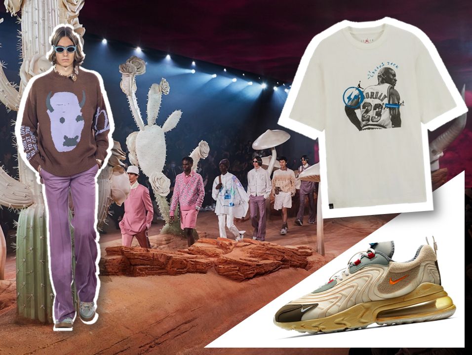 From left to right: Cactus Jack Dior spring/summer 2022, Nike X Travis Scott X Fragment T-shirt, and Nike X Travis Scott Air Max 270 ‘Cactus Trails’. Photos: Respective brands