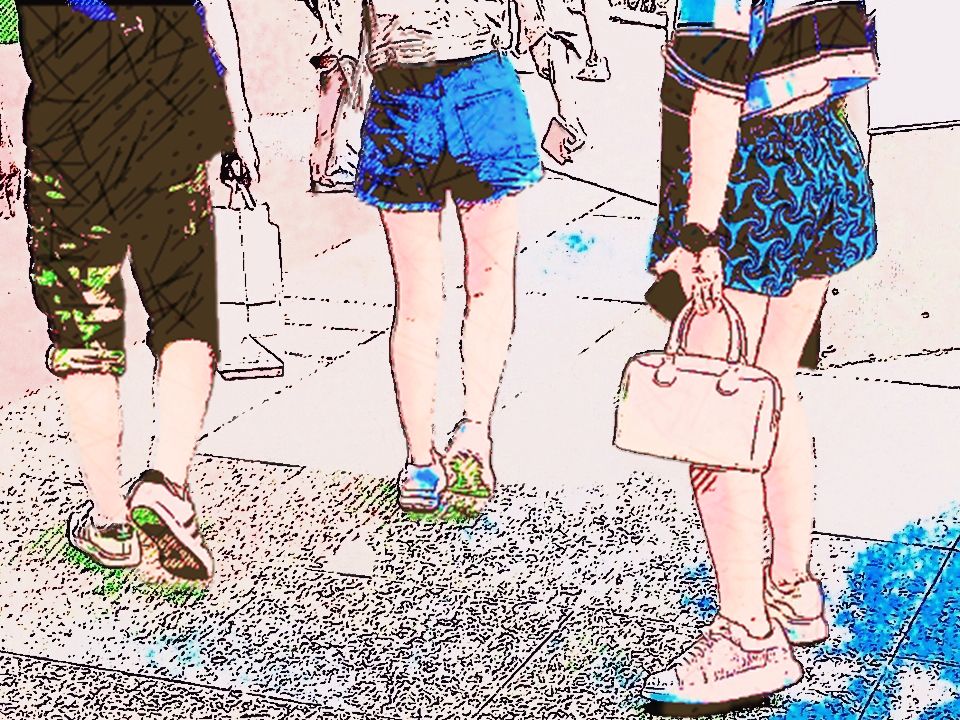 I walk into Cold Storage. Between cheeses and Chardonnays, a woman suddenly appears before me, taking money out of a large hongbao (less hong [red], more jin [gold]), and counting, presumably to see if she has enough to pay for the bottle of wine she is holding in her hand. But it’s not the quick relieving of the red packet of its content in full public view that amuses me. She is wearing a cropped, pastel, tie-dyed top with a pair of studded-at-the-hem denim shorts so torn, the integrity of the fabric is questionable. The jersey micro-whatever is equal in length to her cut-offs. And, black rubber slippers. In the left front pocket of her shorts, a long, bulky wallet peeks. She’s probably in a festive mood: torso and thighs, too, fiercely greeting the Year of the Tiger, unhindered. As she walks away, two women, both also in short shorts, look at her admiringly, the scantiness likely tacks memory to it.