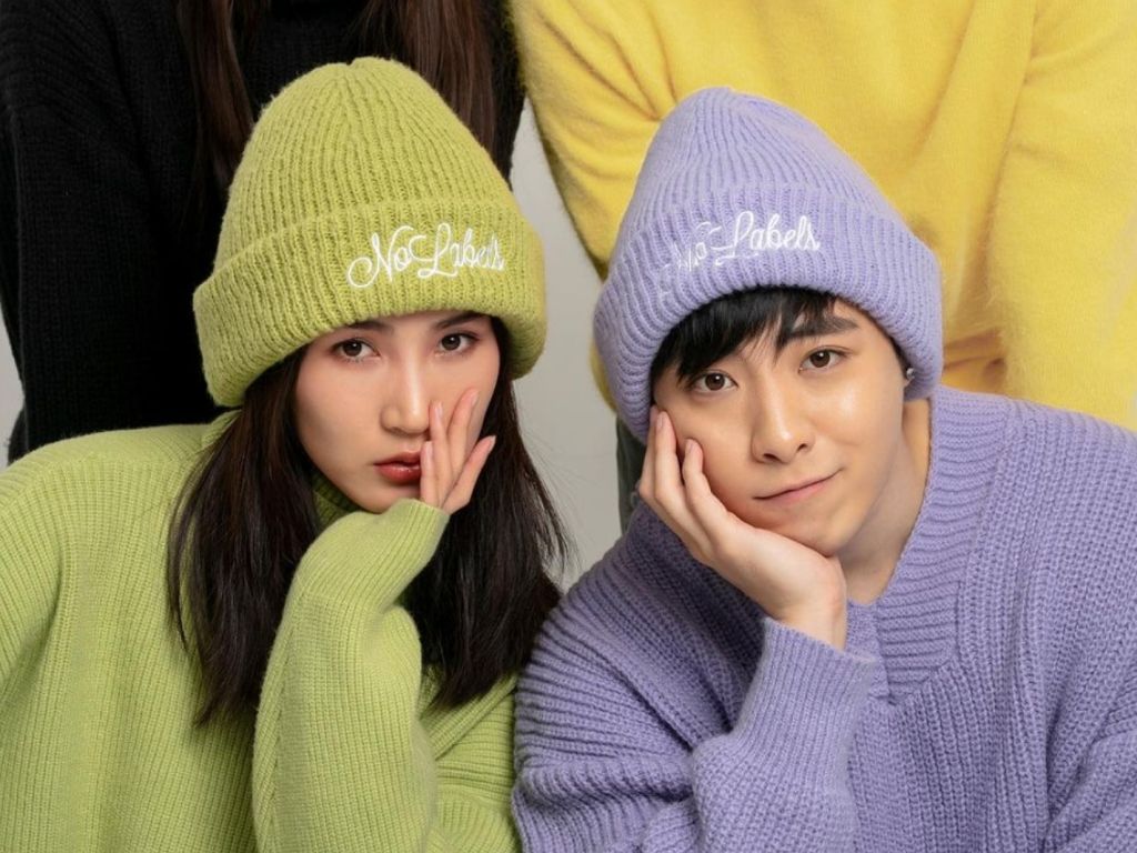 The beanies of No Labels modelled by Dasmond Koh’s protégé-actor Zong Zijie (宗子杰, right). Photo: No Labels/Taobao