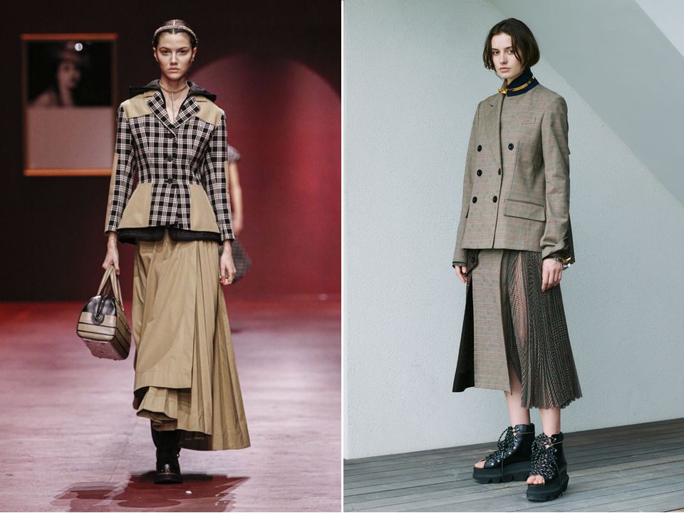 Battle of the skirts: (left) Dior autumn/winter 2022; photo: Dior and (right) Sacai Resort 2021; photo: Sacai