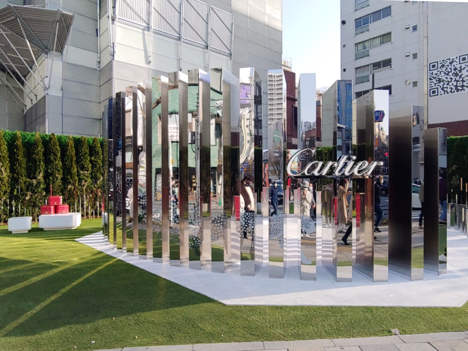 A current Cartier street installation, The Reflection Garden, in Tokyo’s shopping district of Omotesando. Photo: Jiro Shiratori for SOTD