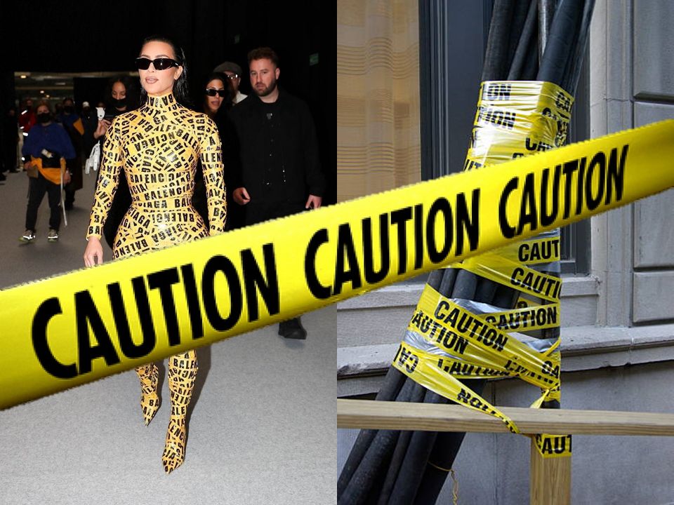 Why would anyone want to look like a walking crime scene or a strutting barricaded site? Sure, we are seeing less of these yellow and black strips now, especially those used as barrier tapes, since massing and mingling are allowed and, if you are masked, social distancing is not required(!). Could this be why desperate-to-be-single-again Kim Kardashian wished to make a fashion statement—no matter how uncomfortable the binding would be—since the polyethylene tape is now not often used in public? Or did she, being pandemic smart, want to catch the attention of onlookers so that her outfit could be impediment to anyone going near her, and, therefore, had the added effect of enhancing the general safety of the front row?