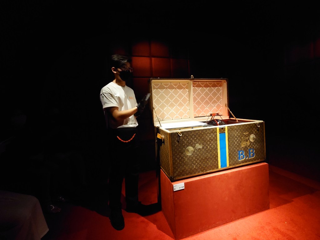 The exhibition is zoned into five ‘rooms’. At the first, we were told by a staffer that this was the “briefing room” even when the briefing was conducted at the foyer prior to entering this space. When we were shown the next room, The Warehouse, we asked one of the guides the reason behind the name, and she told us enthusiastically: “The visionaries create the trunks from scratch here.” Why not ‘The Workshop’ then? The largest number of trunks appears to be housed in this tight confine, stacked as they would be in a warehouse. Or, could this be a tomb since some of the boxes look like ossuaries? The more atmospheric space is The Dreamscape, a darker area where the exhibits are more whimsical, such as balloon artist Robert Moy’s trunk made of small “latex balloons covered in 14 coats of resin” or dead serious, such as creative director Ben Ditto’s plastic-wrapped trunk with the label ‘Infectious Waste’, going back to the cholera epidemic of the 19th century to say something of the COVID pandemic of present.