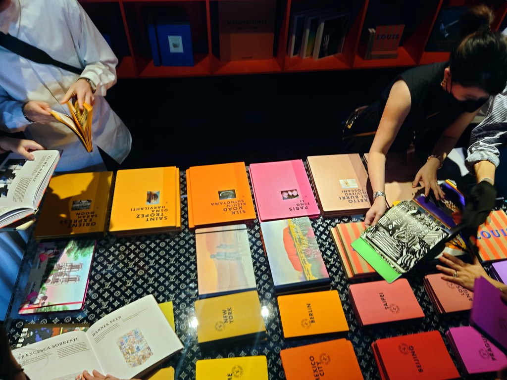 The last room, the only other dedicated to one contributor, houses British DJ and music impresario Benji B’s (hence, the Benji B Room) trunk, in which he had a jukebox squeezed into it. A guy stands next to it to introduce the work, including “all the songs (the DJ) has used in the Louis Vuitton shows”. This is the only “interactive” exhibit in the whole event: You can choose a track to play. We, however, did not. The giggling girls from the previous room, opening the door repeatedly to get in, got to us. Outside, we were back to where we began, less than 15 minutes ago. People were crowding around a desk, on which books related to LV and the brand’s guide to cities were up for grab. It looked more like feeding than buying time. We asked a sales assistant if there were any LV merchandise and was told to go to the store. As we turned towards the door, she said chirpily, pointing to a waist-high container with rolled-up paper in it, “Take a poster. It’s free.”
