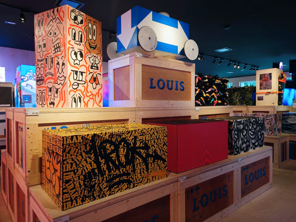 In keeping with the theme, the exhibition is housed in a purpose-built, literal pop-up in the shape of a ‘trunk’ that, in other settings, would be considered a veritable shoebox. It sits on the Event Plaza of the Shoppes at Marina Bay Sands, outside the Collyer Quay/Downtown Core-facing entrance of the luxury mall, as the bigger neighbour of the dome that is the Apple Store. The blockishness stands as an effective counterpoint to the mall’s curvilinear façade that forms the backdrop, but is in line with LV’s own hard-edge Island Maison, a pebble’s throw away. Our island is the exhibition’s first international stop after debuting in Asnieres, France, at the Vuitton family home last December. When we arrived at the exhibition site last Friday, just before sundown, a disheartening queue was seen outside. Many people not in line were milling around the building, enthusiastically taking selfies/wefies as if they had just met a Kaws installation.