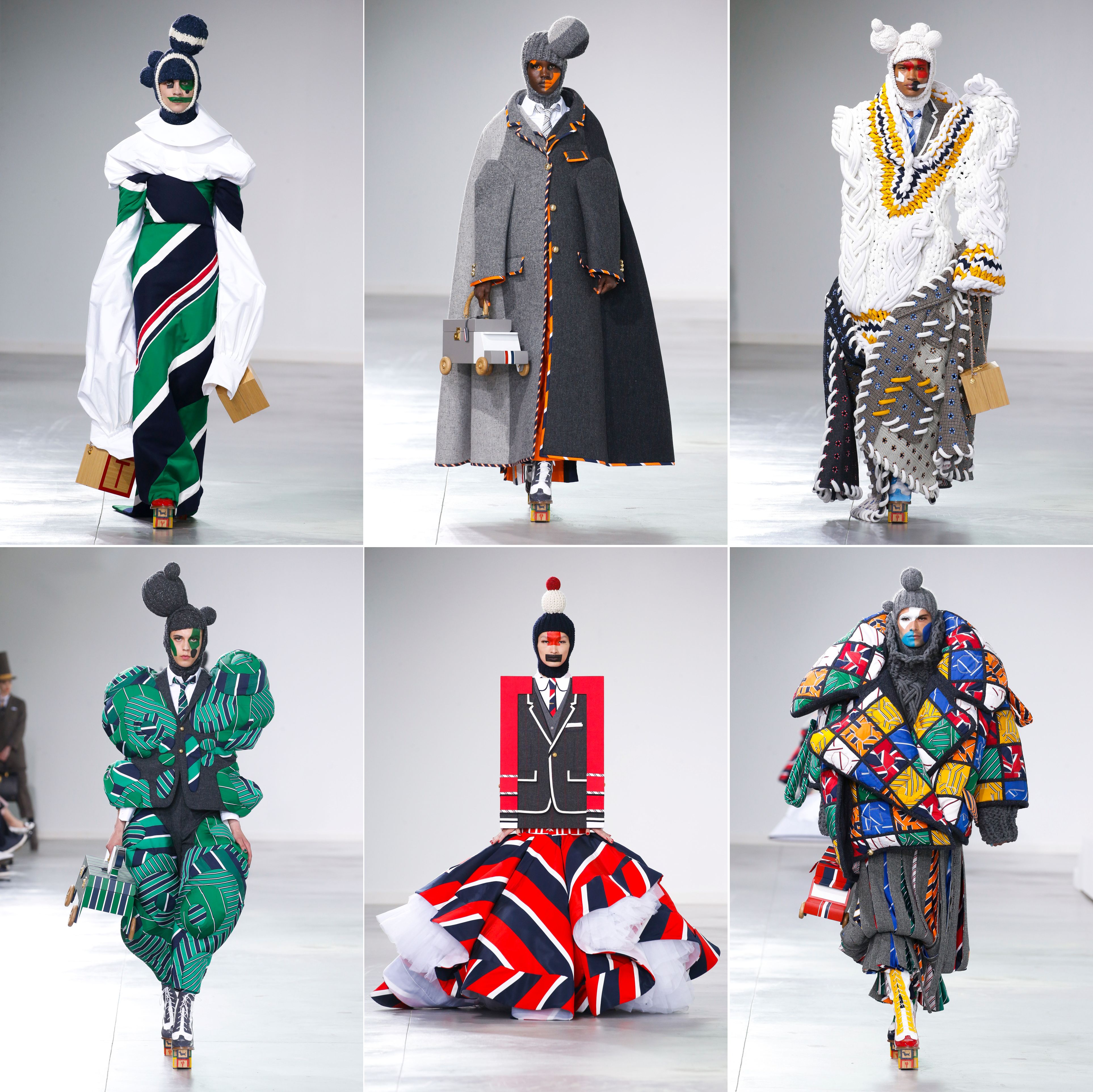 Mr Browne has largely pivoted his designs on the suit, which brandishes his flair for tailoring that is often described as “fastidious”. He is partial to shades of grey, and patterns and textures much tethered to menswear and is even more favourably inclined to include lots of sport coats, especially the uniquely British regatta blazer. But in his hands, they have less in common with those adopted for the sport of rowing than the blazing pieces worn by ringmasters of a cirque (this season, a madcap schoolmaster, perhaps?). Preppiness may also be the seeming effect, but subversiveness is clearly part of the equation, for the Thom Browne fan is no collegiate stiff.