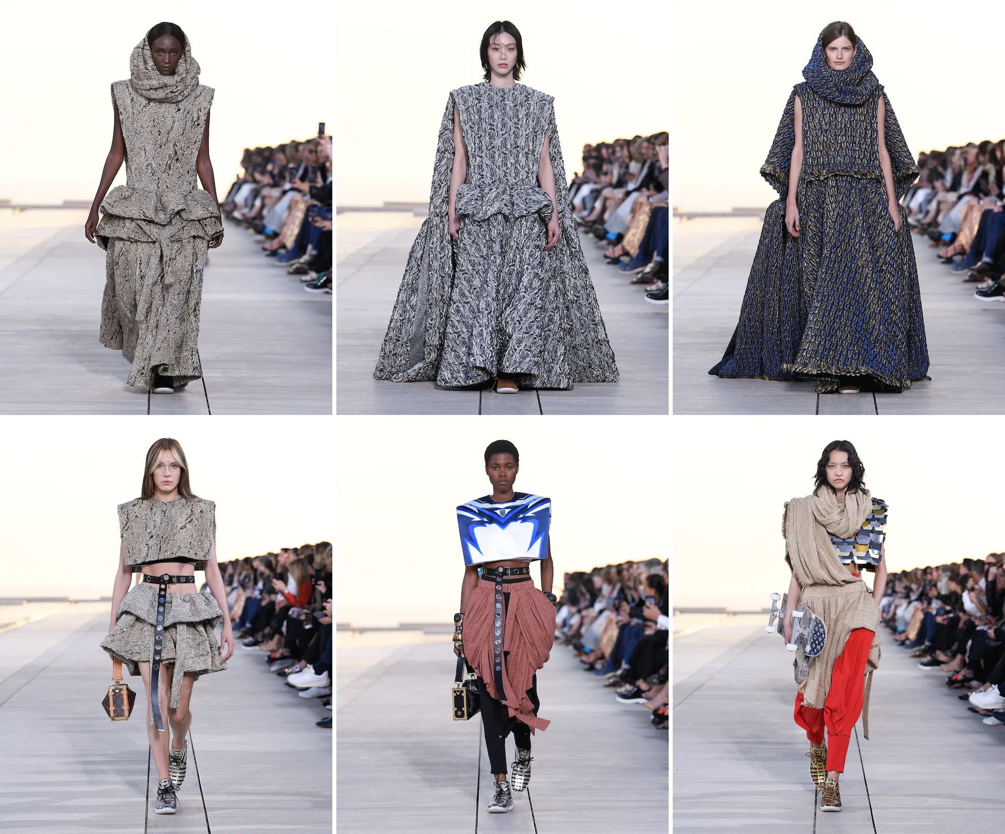 These are not clothes that many would immediately call “pretty”. There are enough pretty clothes in this world—a surfeit, in fact. What Mr Ghesquière has proposed do not even look like they are destined for a holiday wardrobe (let alone be considered for a cruise). Battle-ready? Or for climate change? Who knows? This isn’t Mr Ghesquière writing the story of LV in plain hand. There is exaggeration beyond the paniers of the current spring/summer season (Gemma Chan wore one of them at the Met Gala, looking somewhat mis-clad and misplaced). Mr Ghesquière has offered aesthetically-challenging clothes before, but this time, they are extreme to the point of being, strange, otherworldly. As one stylist said to us, many women here who buy French RTW are not into such looks as they do not make them look feminine, like Dior does. And the very straight shoulders of the shell tops, for example: “too aggressive”.