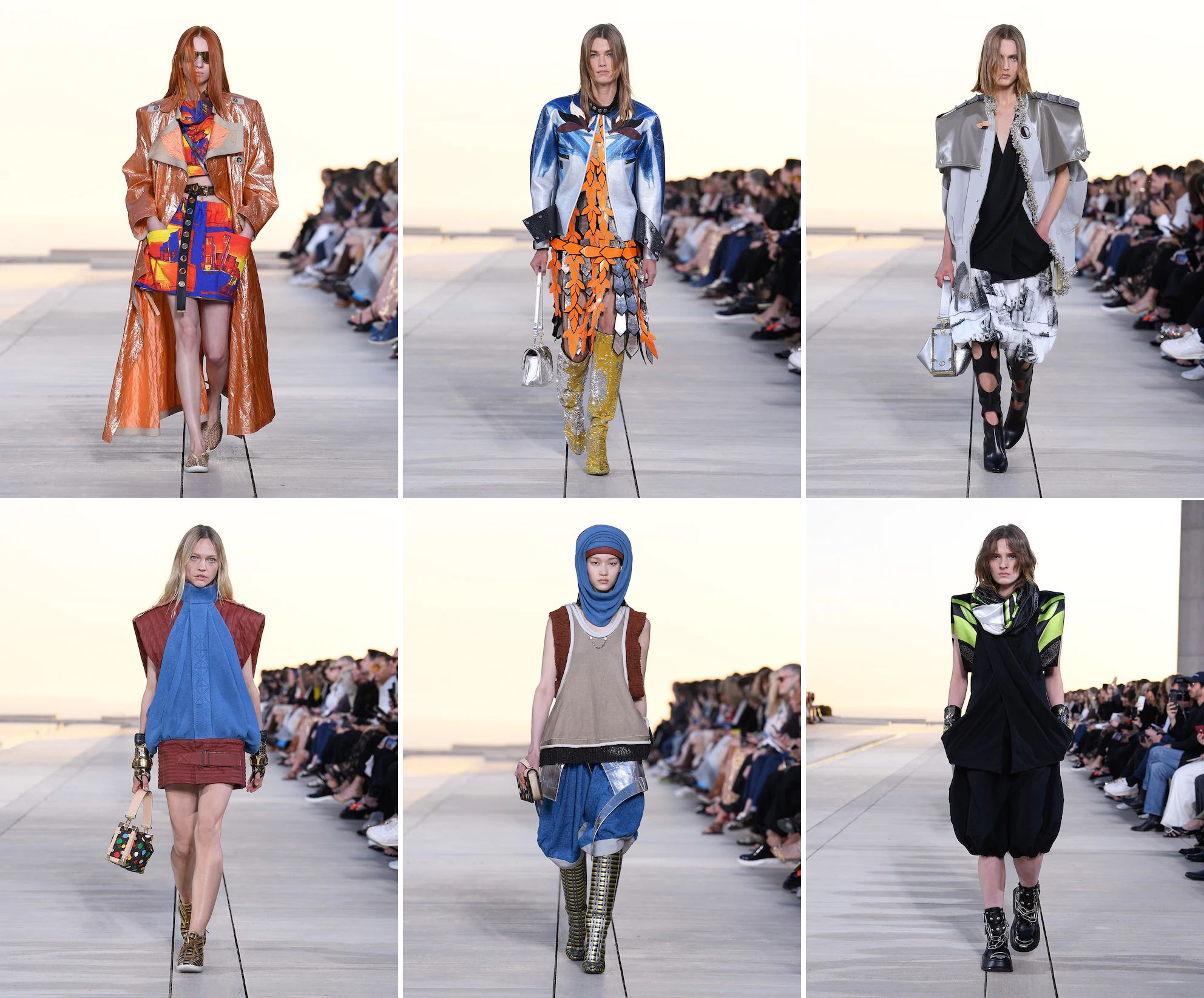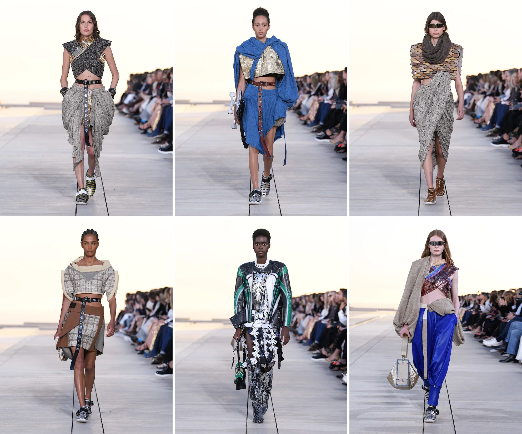 Chanel’s cruise collection, shown in Monte Carlo last week, marked the return of the inter-season line often staged in far-flung places. But there was nothing to say about that collection. Fast forward to yesterday evening (our time), Louis Vuitton’s cruise is a journey to some unknown desert planet (or known—how about Mandalore or Arvala-7 or Tatooine, for Star Wars nerds?) although the runway was winged with the Brutalist buildings of Louis Kahn’s Salk Institute for Biological Studies in Southern California. Against the stark setting with nary a plant in sight, the models are attired as if filming a scene of some movie not set on this earth or surrounded by earthly tech. Inter-galactic vagabonds, mercenaries, resistance fighters, or even Jedis? Some people say they saw Amazonians, but we doubt Nicolas Ghesquière, who, although reportedly used the word “goddess” in relation to this collection, was thinking of Paradise Island, home of the Princes of the Amazons, aka Diana. Yet, the Bracelet(s) of Submission made their visible appearance!