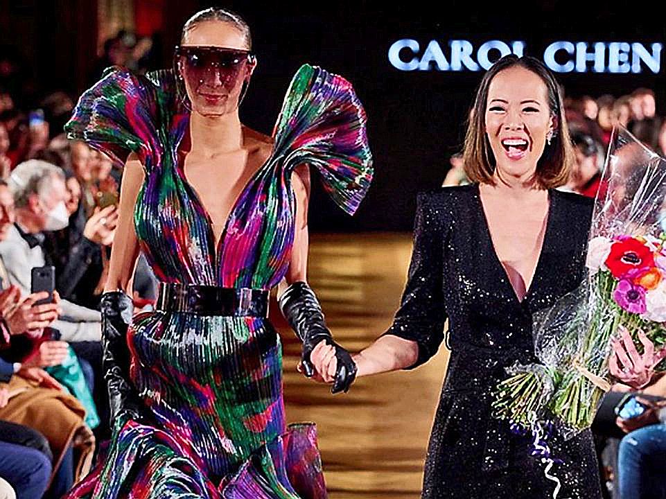 There is a stark difference between “show(ing) during Paris Fashion Week” and presenting a collection as part of the PFW calendar, set by the Fédération de la Haute Couture et de la Mode (FHCM), or, as it is popularly referred to in English, the French Fashion Federation. Carol Chen (陈慧敏), the Taiwanese-American whose eponymous label is referred to as a “Singaporean brand”, was careful to describe her debut in Paris as the former. Last March, a month before our COVID restrictions were lifted, Ms Chen participated in a fashion show in the French capital that was part of her prize, promised to her by organiser of Singapore Stories 2020 , the Textile and Fashion Federation (TaFF), that included a “retail collaboration with (the store) SocietyA”, as well as “one of the winning looks displayed in the contemporary gallery at Asian Civilisations Museum alongside renowned designers in #SGFashionNow”, and cash. In an Instagram entry before the presentation in The Westin Paris, she wrote that the “show is for Singapore, the country that made this opportunity possible and inspired me to design again”.