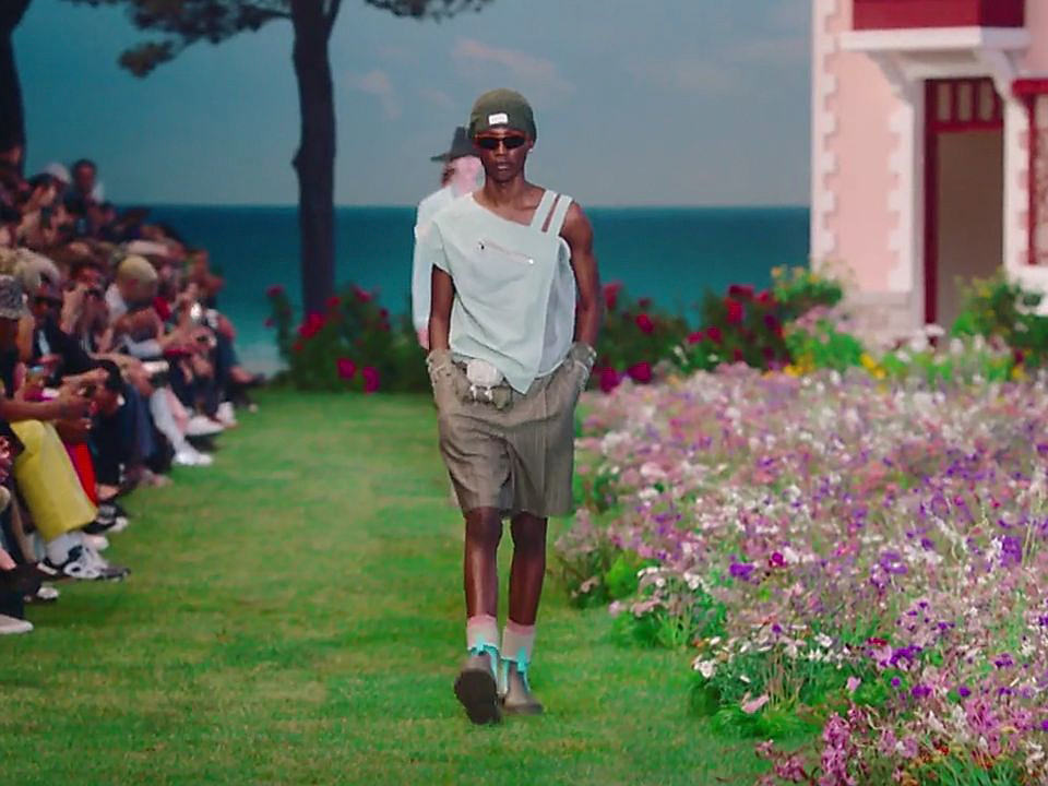 In this collection, outdoorsy looks that some commentators call “cottagecore” are thought to be Mr Jones’s cabbage patch. There are, therefore, plenty of shorts—double shorts, in fact; or running shorts-looking pairs on top of fitted ones that could be for cycling. These are teamed with embroidered fleece jackets, their technical kin (in sort of a camo print), sweaters (including sleeveless ones) bearing the artworks of Duncan Grant that Mr Jones reportedly owns. His usual tailoring is there, too: jackets have softer shoulders, waists cut close to the body, and peaked lapels worn upturned, creating graphic interest for the neck. But something else is not seen before—blousy tops. Mr Jones has largely avoided the semblance of skirts (even his shorts are not that wide) or dresses for men. So two tops are fascinating. One is like an asymmetric, half-woven-half-netting take on a scrub; sleeveless, but one shoulder is extended, the other side, double strapped. The other, a long-sleeved top with a square-necked double yoke-flap (with brooch to hold both pieces in place). Feminine touches, no doubt. Enough? Kim Jones never promised anyone a rose garden.