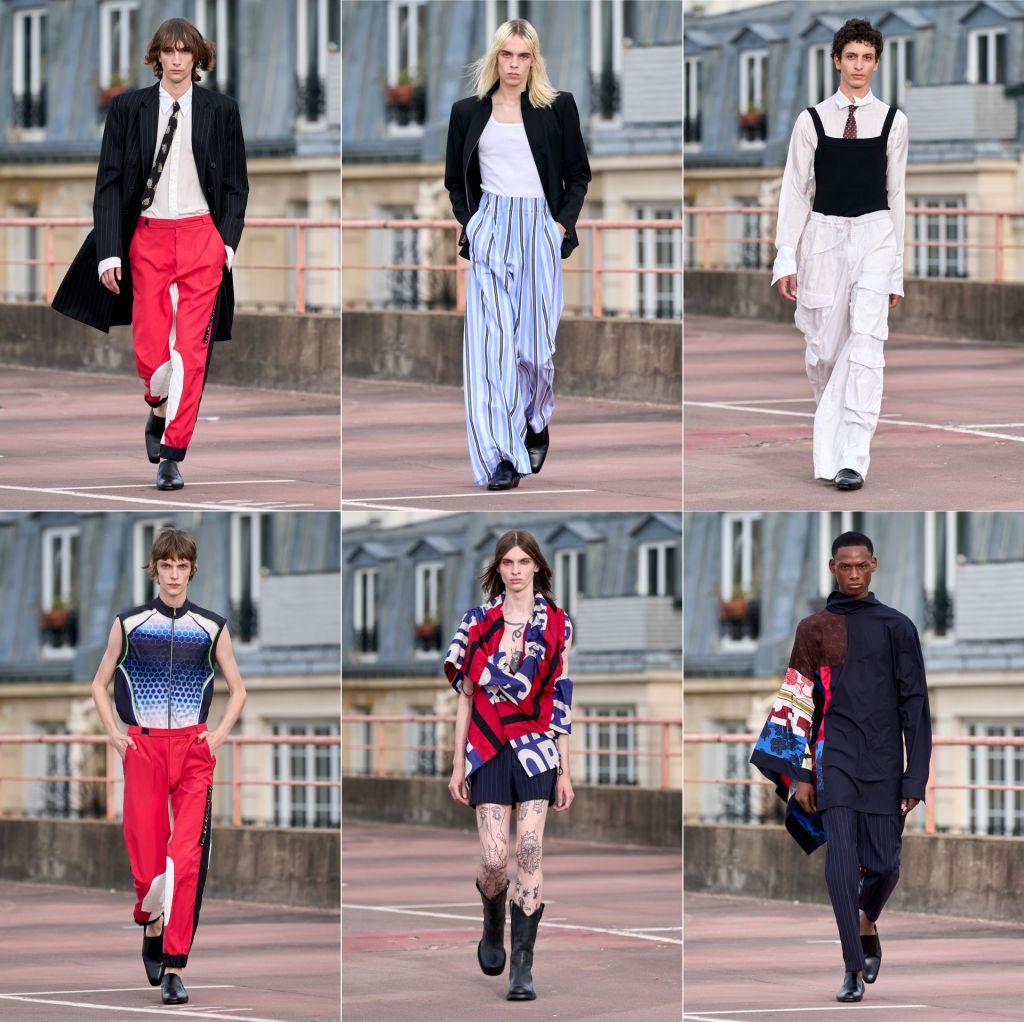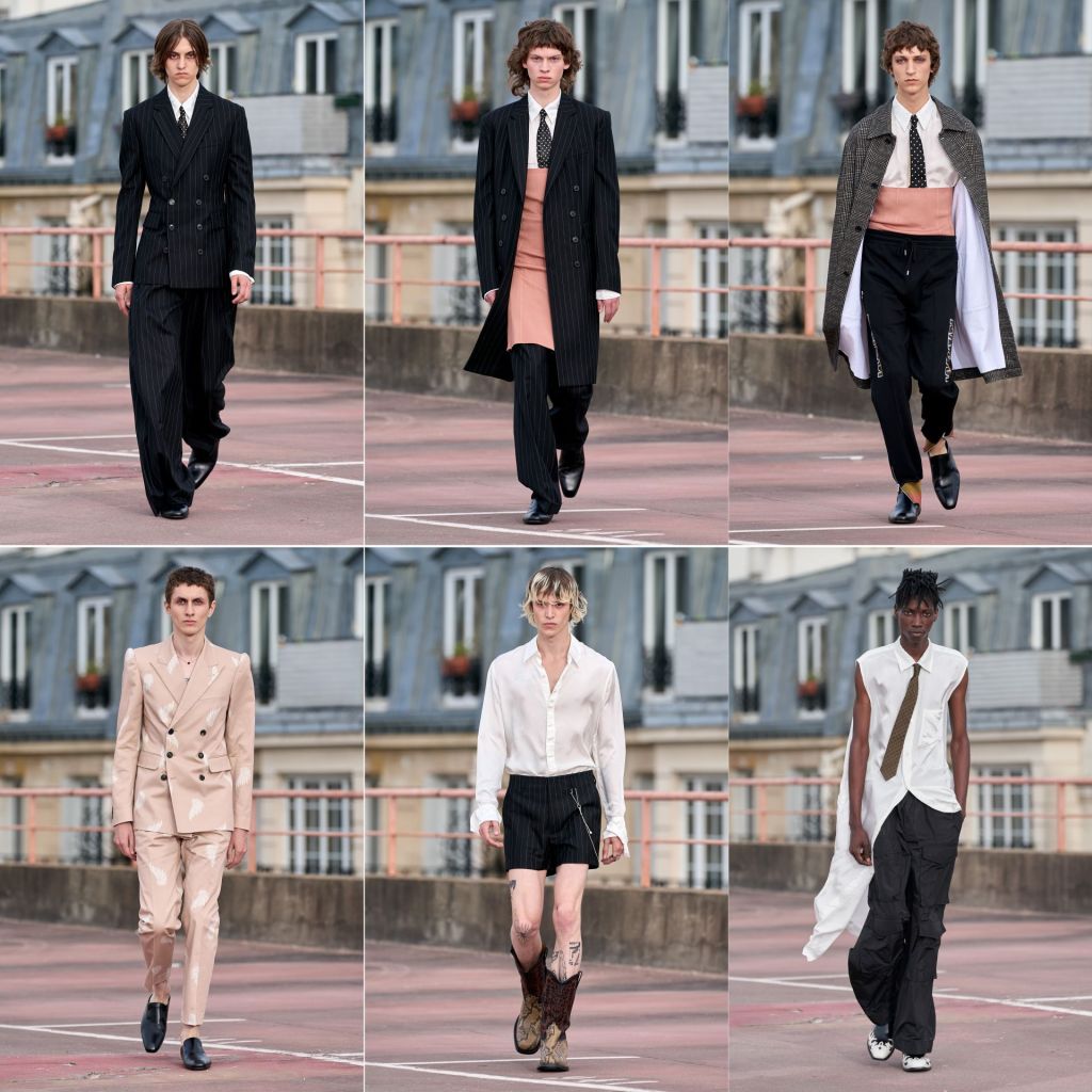 We know that Mr van Noten does not shy away from ethnic touches (even flourishes), but we doubt this is his intent for the collection, shown at a rooftop carpark (do they have those in Paris?), that has to speak to sartorially expressive men, even if they’re not peacocks. His use of colour—that dusty pink!—is always winning and his mix of prints remain a desirable strength. Oriental motifs are juxtaposed with sporty stripes, foliage with gradated dots, bold text in san-serif font with patchwork of all the print types that Mr van Noten is fond of: The mix is lively, even fresh, when compared to the ‘dirty’-looking fabric treatment that is gripping Paris (and, earlier, in Milan) this season. Sure, some of looks veer towards the dandy, but is that not more swell than looking like a tramp?