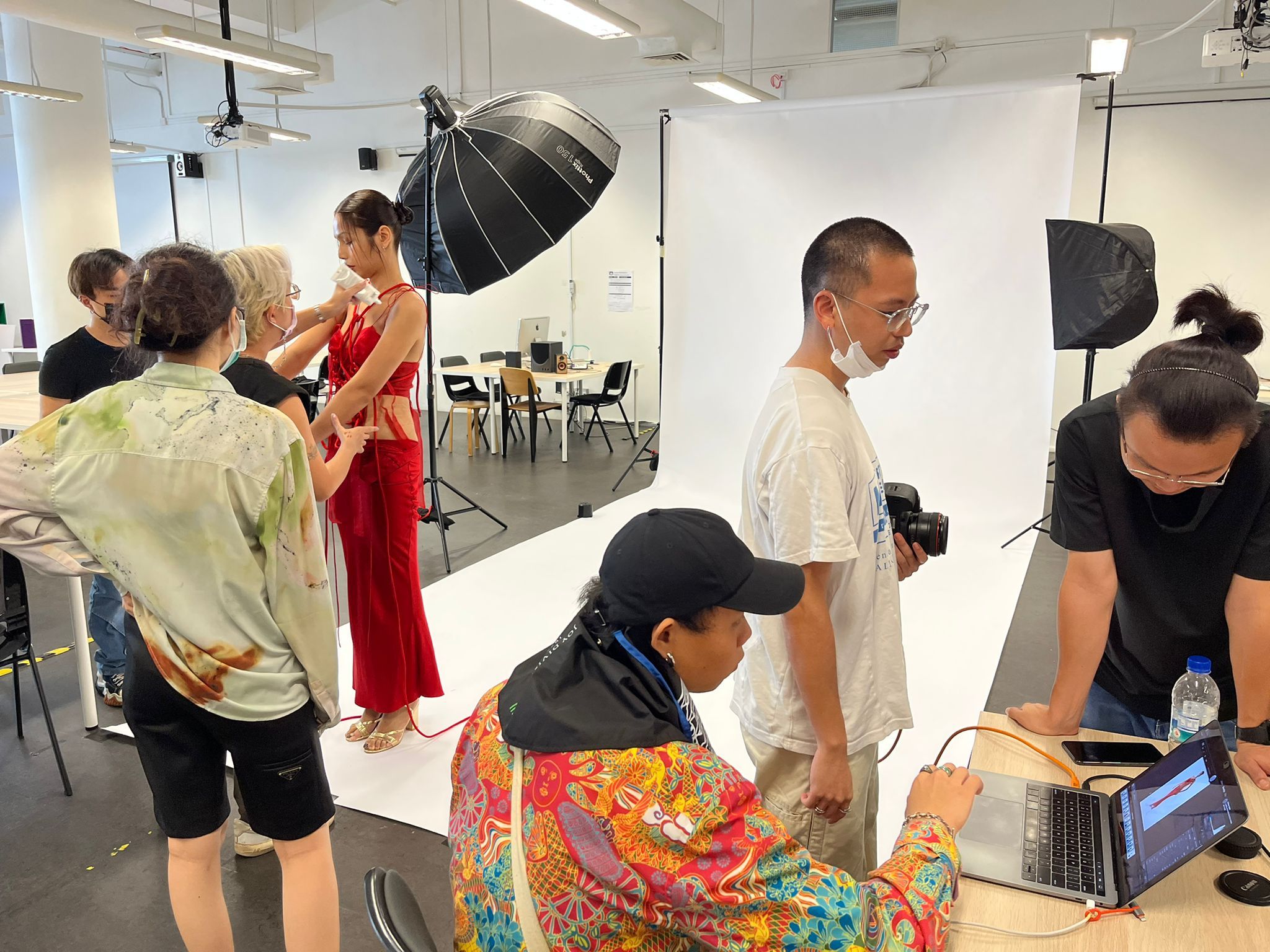 The photo shoot for #SGFASHIONNOW. Photographer Ethan Lai, second from right. Screen shot: sgfashionnow.com