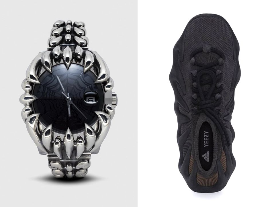 Alabaster Industry’s ‘Web’ watch and the the Adidas Yeezy 45 in slate. Photos: respective brands