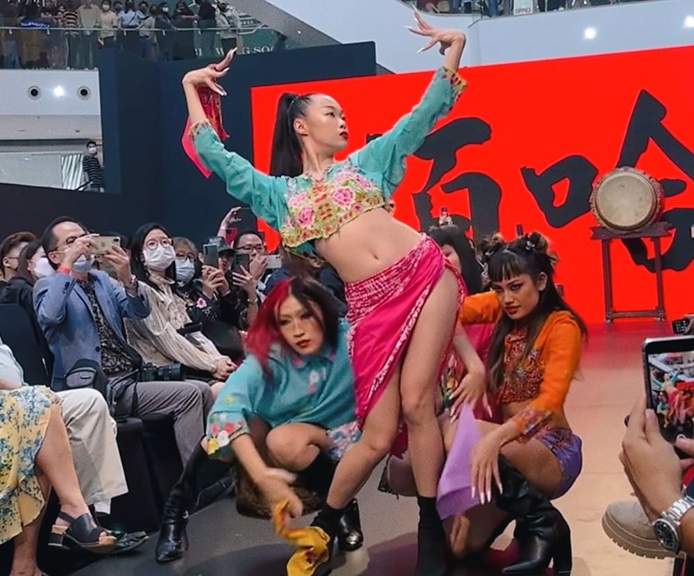 Mr Tan did not, however, draw flak for just his personal attire alone. The clothes he presented for Behati on the runway at KLFW attracted unfavourable criticism too. Based on “mixed race, mixed culture, mixed tradition”, the Peranakan-themed collection had all the fervour of a graduate show and the appeal of a cultural village gift shop. Mr Tan’s adoration for his nation’s plural culture is palpable, but he does not consider a judicious use of the myriad things, big and small, that he adores to keep the end result from being laughing matter. Or, worse, the proverbial rojak. There is something naive about his love for the cross-cultural. His critics were not just unimpressed with the baju-panjangs-as-duster-coats, kebaya blouses teamed with cargo joggers, or the 结婚绣球花 (jiehun xiuqiuhua)—wedding ribbon ball—strapped to a white suit worn under a sheer baju panjang festooned with tassels, but for the four model-dancers who performed and strutted their stuff in fake kebaya tops (two were very cropped!) and triangular fabrics tied to the waist like a pareo and exposing considerable rump. Any bibik would say the clothes (and their wearers) are tak senonoh (indecent). Behati fans applauded the social media-worthy liberties taken, but others were appalled, with one IG user going as far as to describe the seeming impropriety as “rape the tradition”.