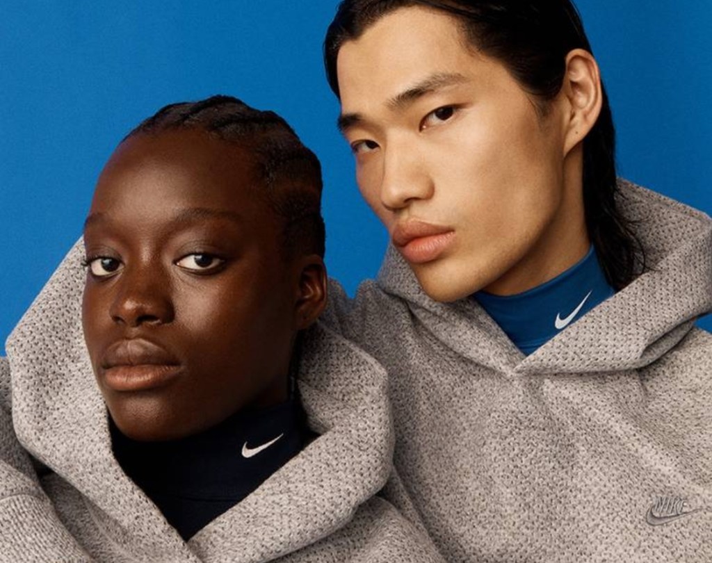 The new fabric will initially be used for a hoodie and a sweatshirt (just two, and, although gender-neutral looking, they do come in styles for women and men). To further the reduction process, both garments, already minimalist, come sans zippers, aglets, or superfluous trims (but not, of course, the embroidered logo), which Nike says allow the clothes to be easier to recycle. Additionally, the fabric of the tops do not require water for the dyeing (most fabric dyeing notoriously require staggering amounts of water. According to one Euronews report, “to dye 1 tonne of fabric, 200 tonnes of water is required”) or finishing, such as laundering, to render it soft.