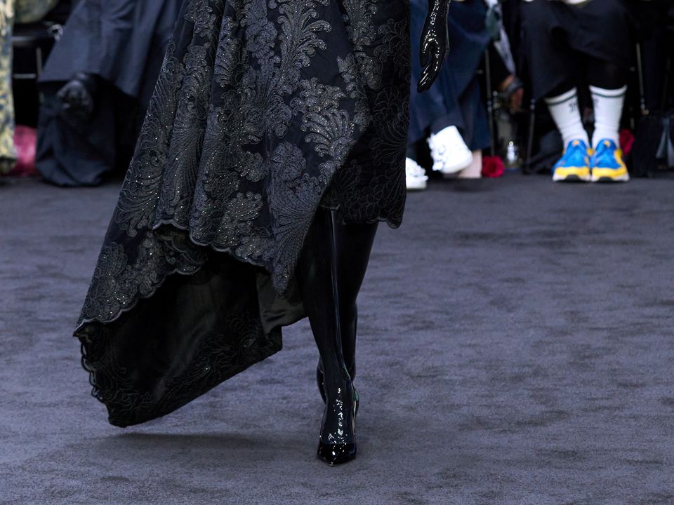 Four years later, Mr Quinn honours the Queen in return with one-half of a collection that leaves no doubt to its royal inspiration. Rather than cancel his show or add a token dress to salute Her Majesty, he conceived 22 all-black looks as effluence of emotion, respect and creativity to preface the show that he had originally planned. Mr Quinn admitted that he and his team had poured the “emotions of mourning into it (the first part)”. The raven gowns illustrate that even without colours or a riot of prints—the “ditzy florals”, Mr Quinn is masterful at assembling sumptuousness. The textural delicacy within almost traditional shapes could have been Christian Dior in partnership with Balenciaga—if collaborations could be coaxed out of the old masters—reimagined on a character from the past, such as Anna of Austria, Queen Consort of Spain. And then mantillas and floor-length face veils (rather than gimp masks) remind us that it is Mr Quinn who loves obscuring faces. There is much to enjoy in what could be mourning clothes.