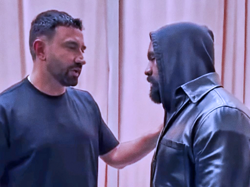 Riccardo Tisci with pal Kanye West after the Burberry spring/summer 2023 show in London. Screen shot: No Content/YouTube